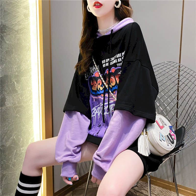Les coréens aiment beaucoup les graffitis. Représentez cette mode grâce à notre sweat à capuche aux impressions déjantés. Les manches de ce sweat sont de couleurs différentes.