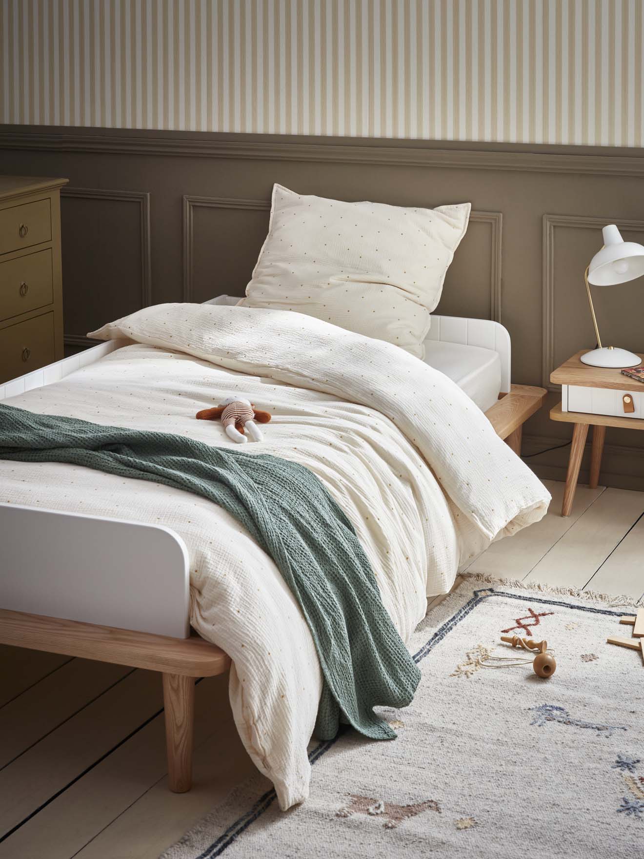 Housse de couette en gaze de coton à l’aspect légèrement gaufré. Le confort est doux et aérien, le style est raffiné, les coloris actuels.