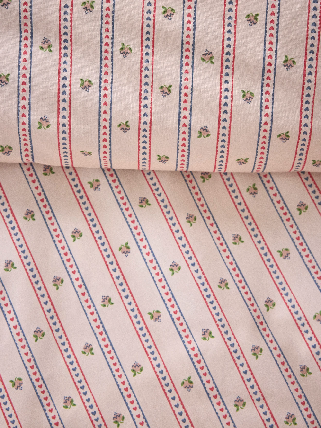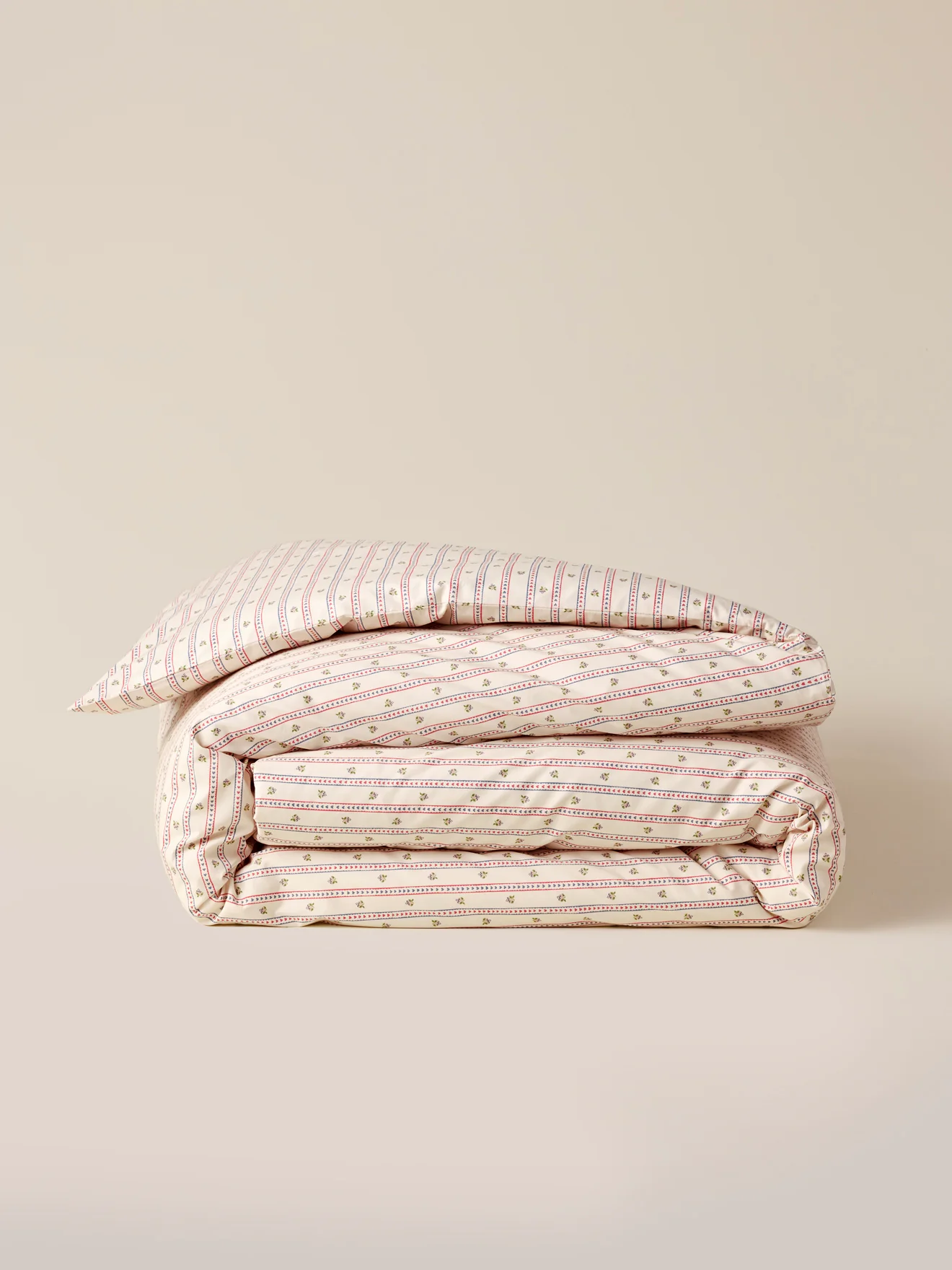 Housse de couette en percale de coton recouverte de rangées de fleurs et de petits coeurs sur les 2 faces. L’imprimé Avril est un imprimé exclusif Cyrillus.