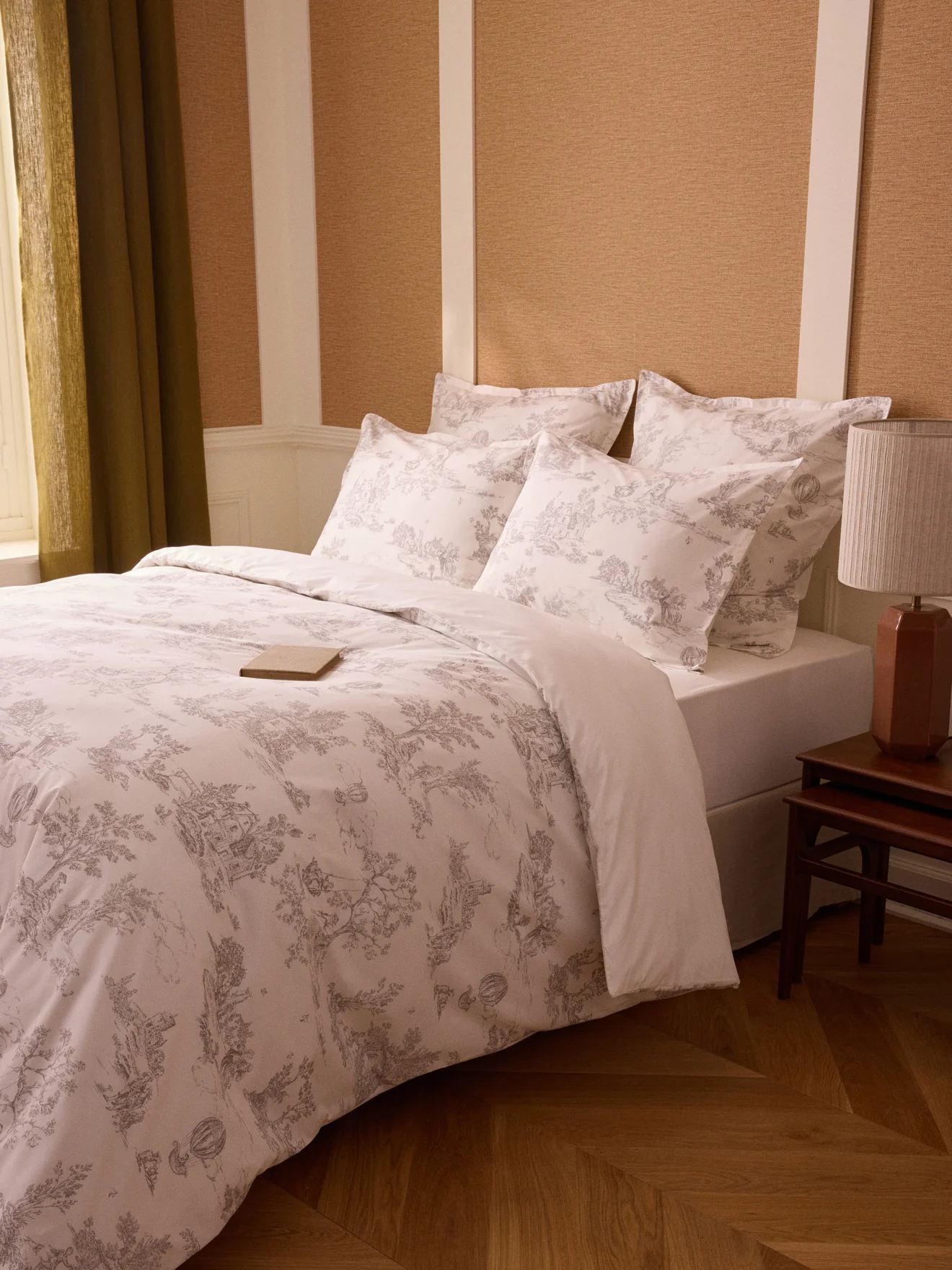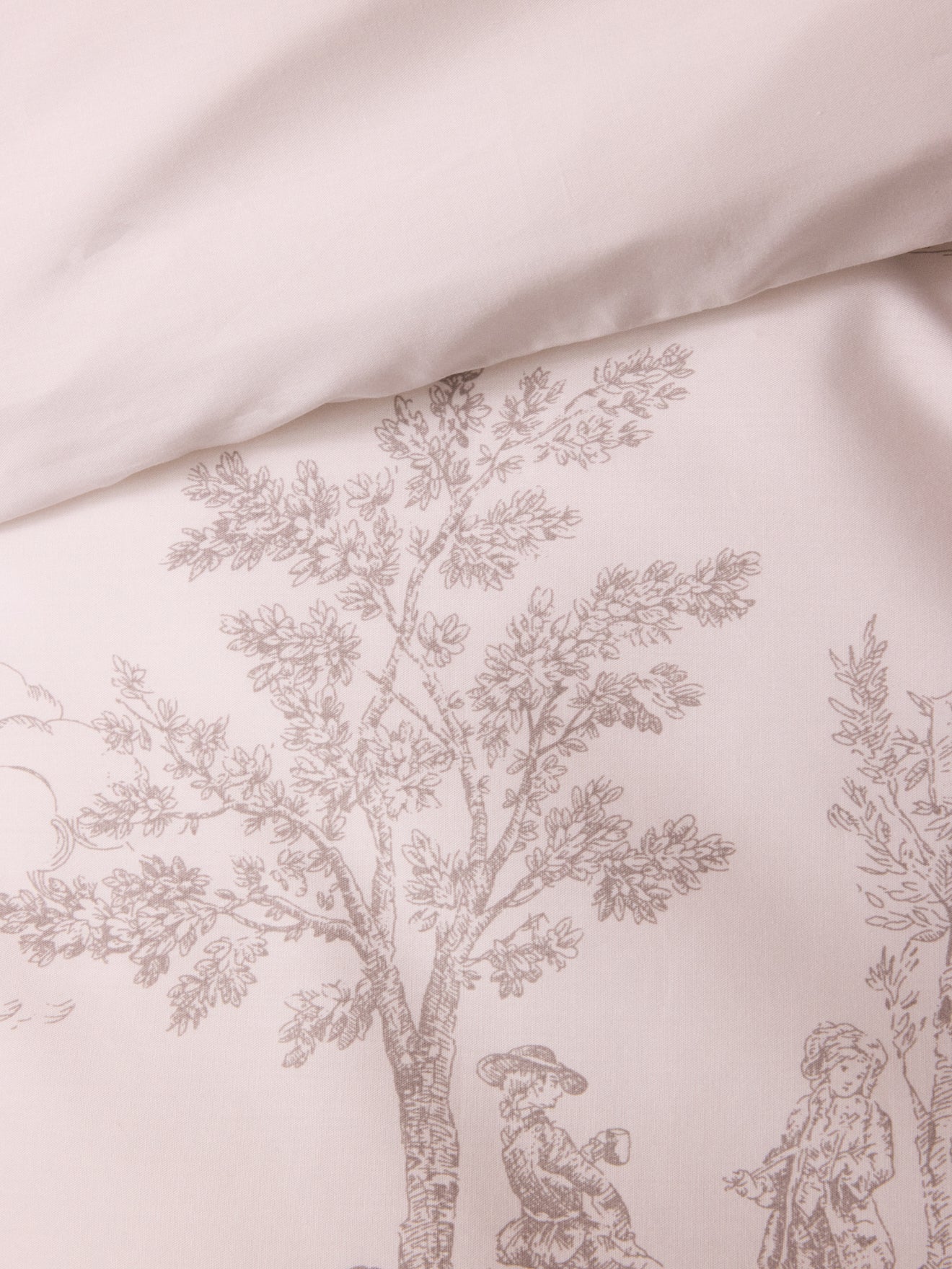 Housse de couette en percale de coton inspirée de l’intemporelle toile de Jouy. Un style tout en douceur, tradition et élégance.