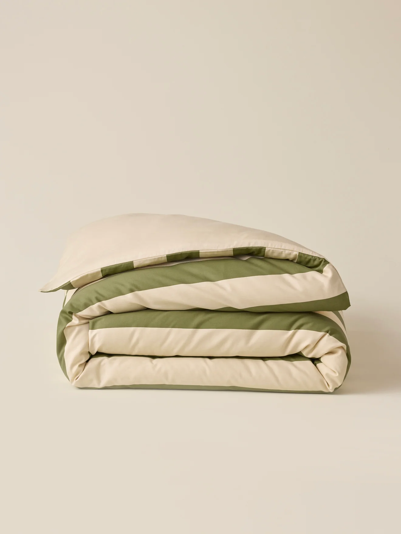 Douceur satinée et larges rayures intemporelles. Housse de couette rayée en satin de coton pour une réelle sensation de confort et de douceur. Les reflets légèrement brillants s’estompent au fil des lavages.