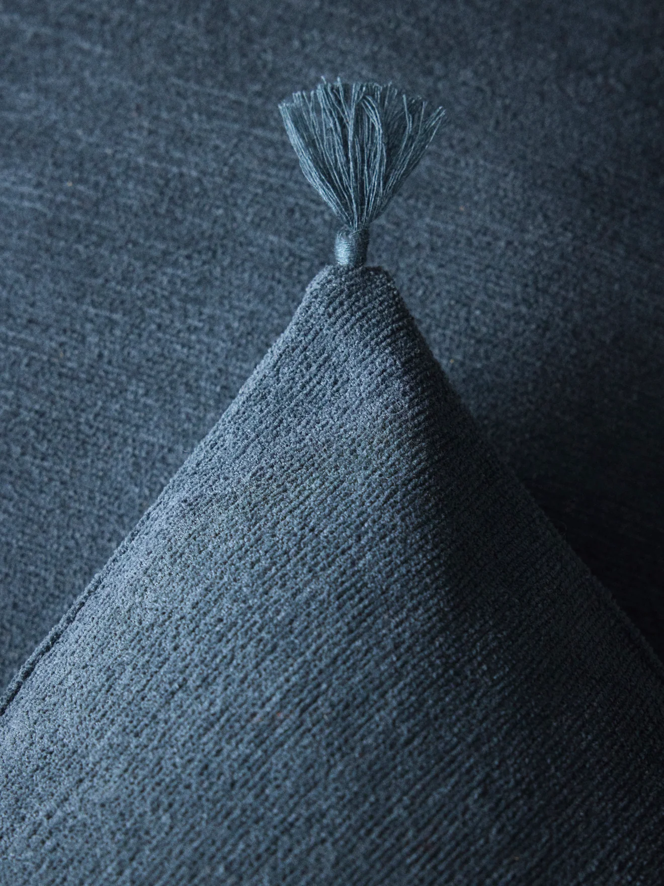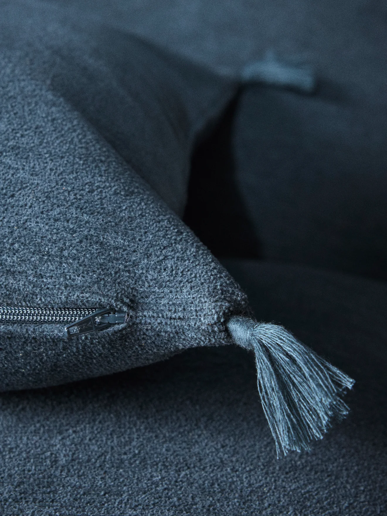 Housse de coussin en coton velouté légèrement soyeux. 4 petits pompons et une glissière invisible. Existe en 3 tailles et 3 coloris soigneusement sélectionnés. Livrée sans coussin de garnissage.