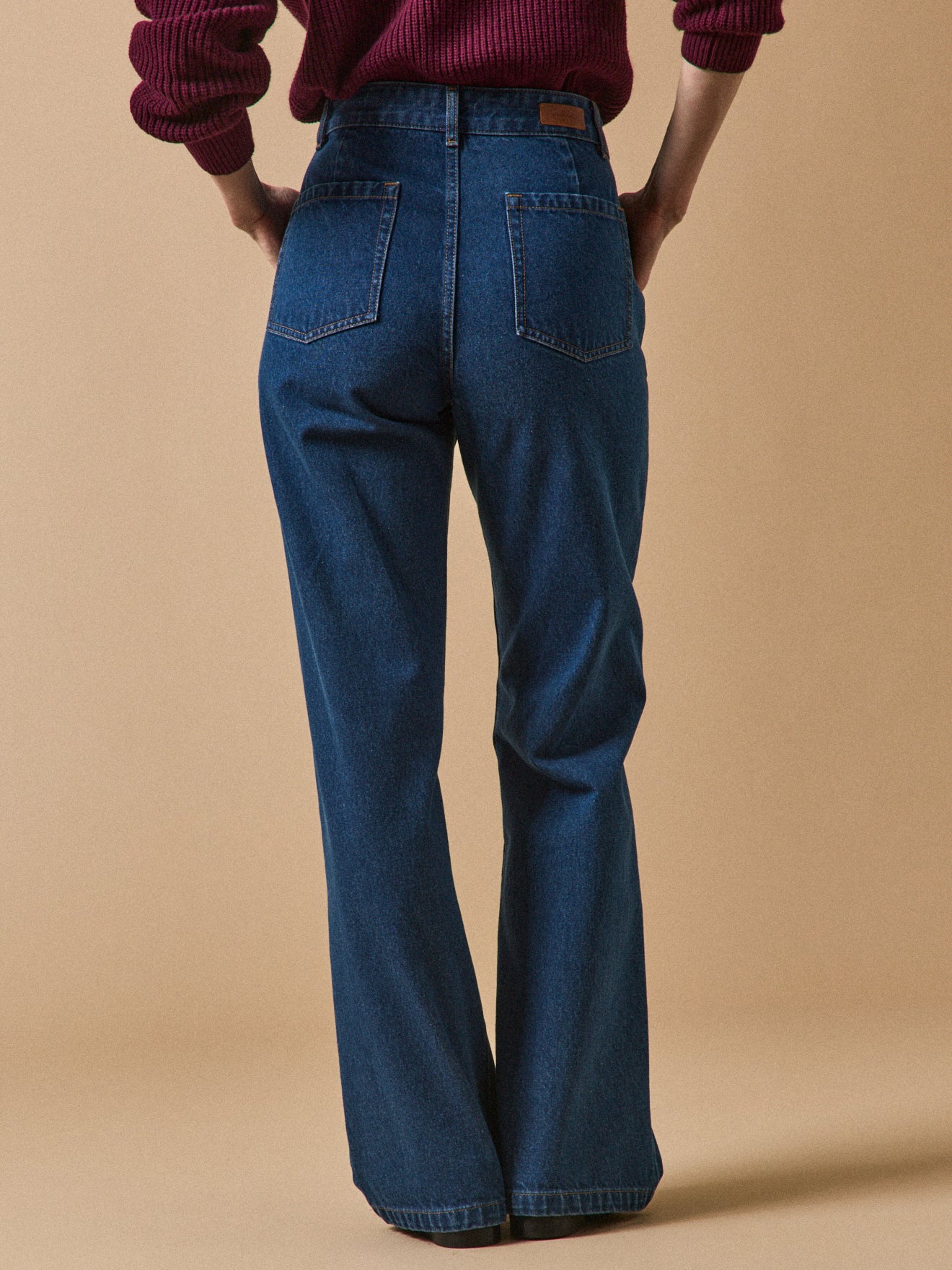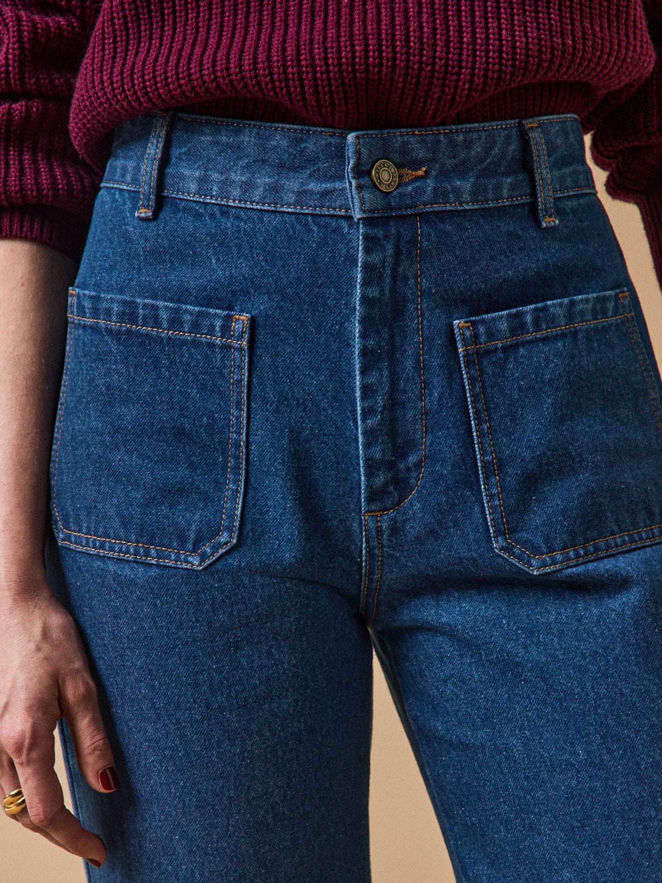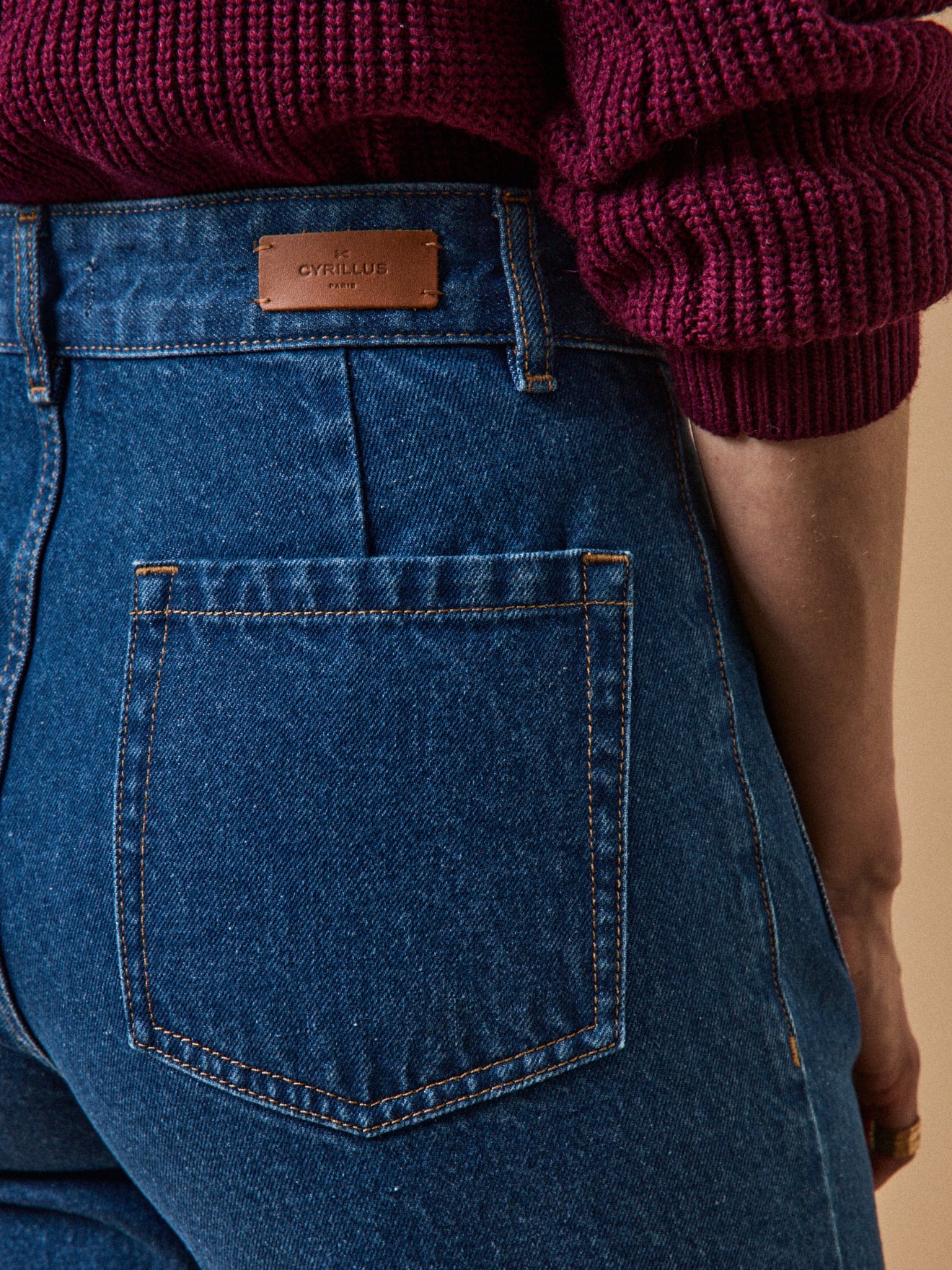 Poches plaquées devant et dos, ligne flare… Confectionné dans un denim résistant en coton biologique certifié, le jean s’affirme avec une élégance décontractée. En mode bureau, urbain ou cool, une pièce facile à porter toute la saison.