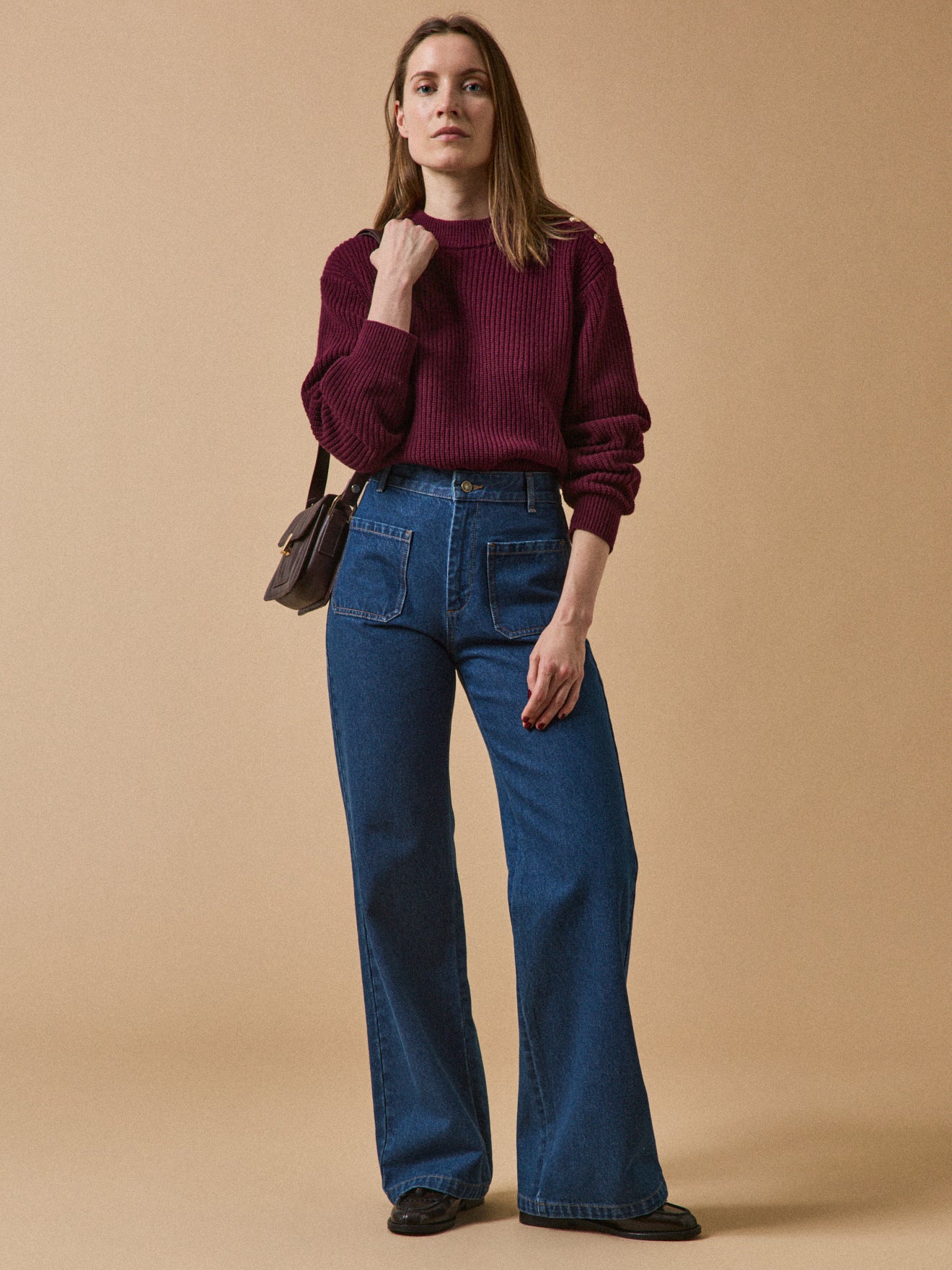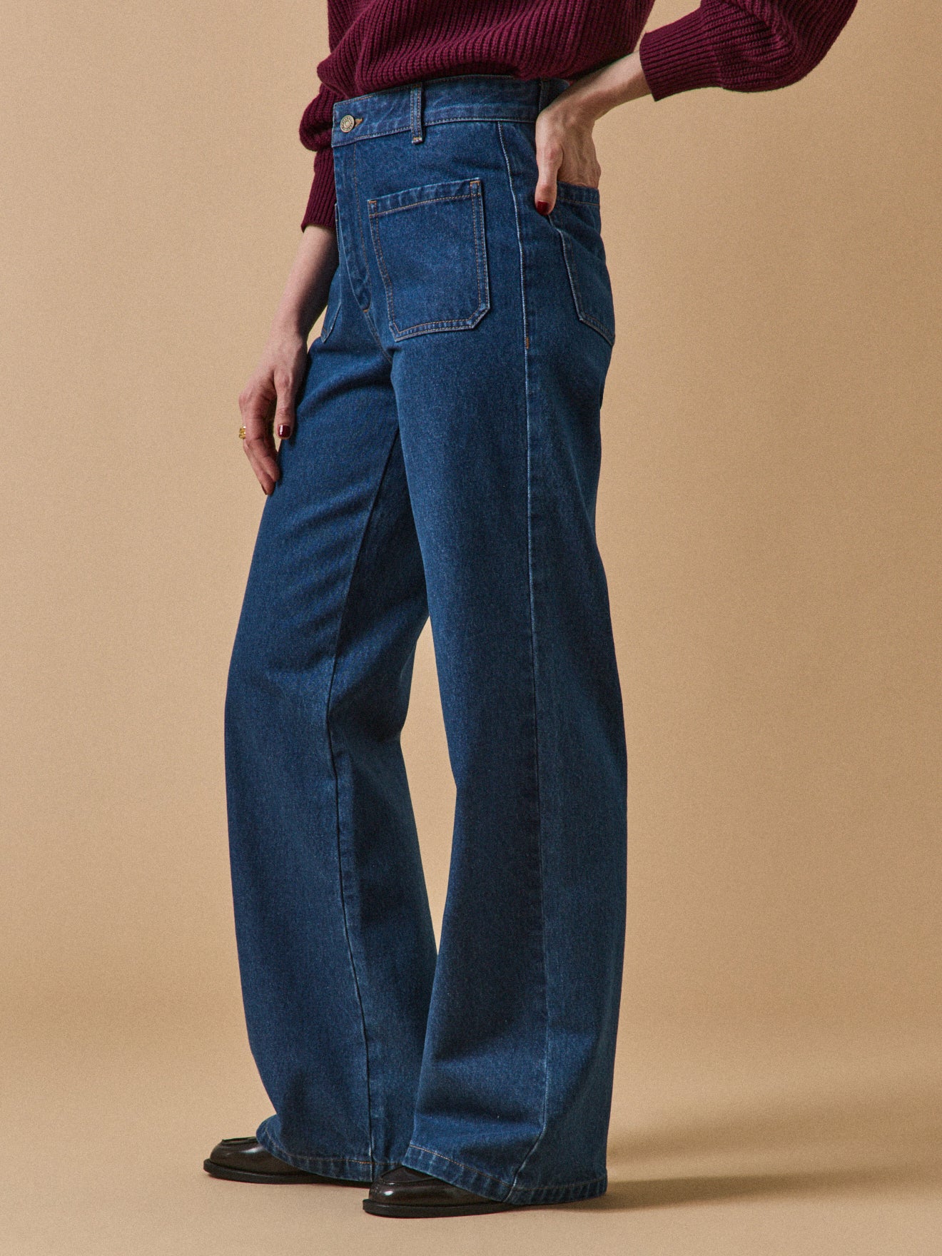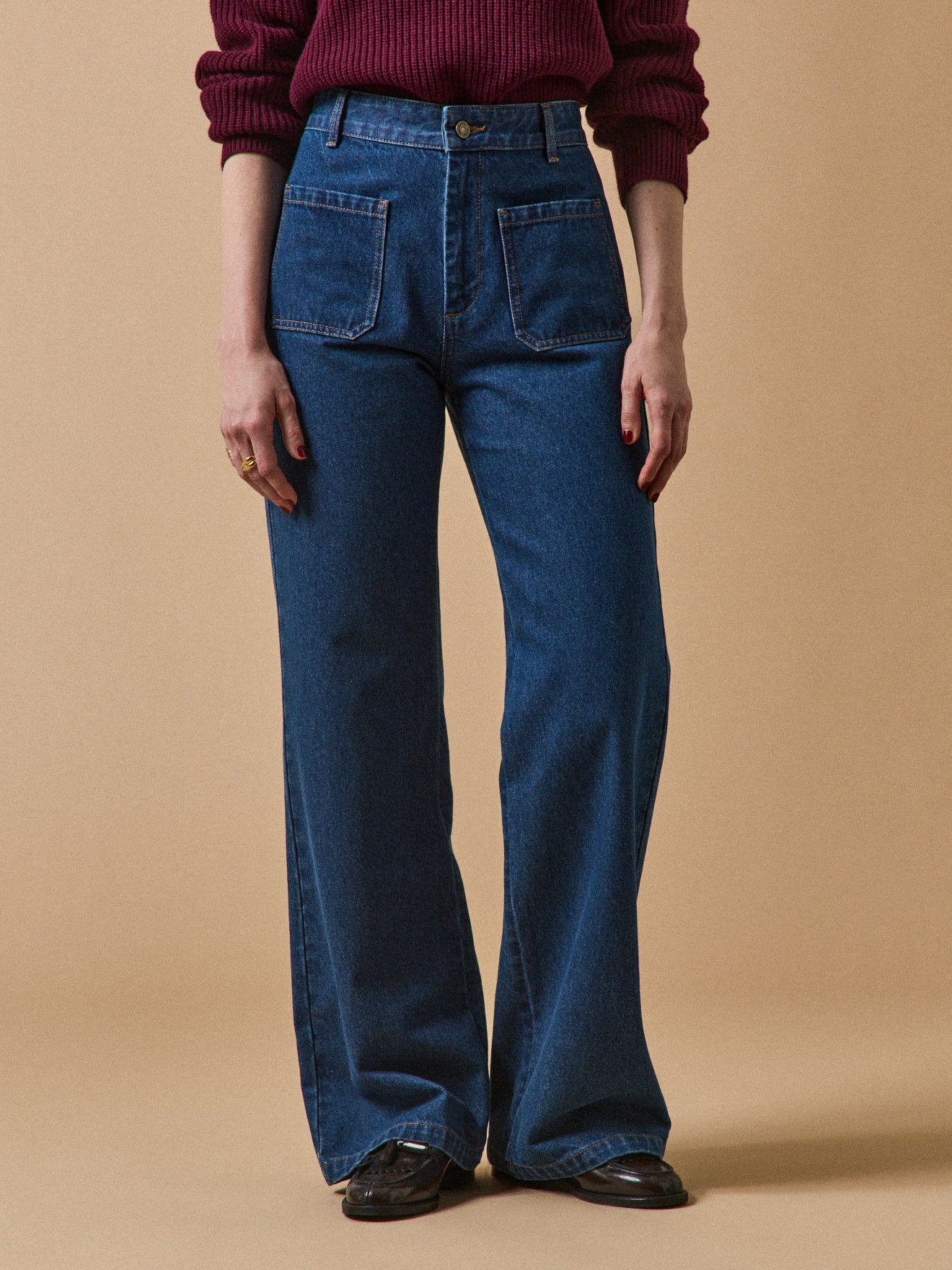 Poches plaquées devant et dos, ligne flare… Confectionné dans un denim résistant en coton biologique certifié, le jean s’affirme avec une élégance décontractée. En mode bureau, urbain ou cool, une pièce facile à porter toute la saison.