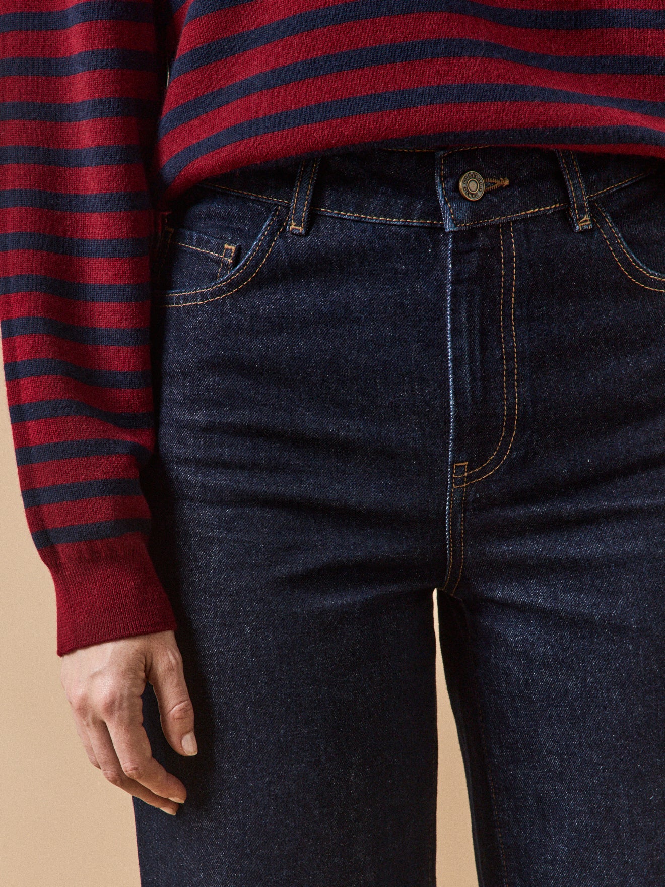 Coupe vintage large, en version denim brut, un jean aussi facile à porter en mode urbain chic qu’en version décontracté cool. Taille : standard Jambe : large Longueur : cheville Entrejambe : 72 cm, bas 24 cm (en taille 38) – Notre mannequin mesure 1m77 et porte du 36 –