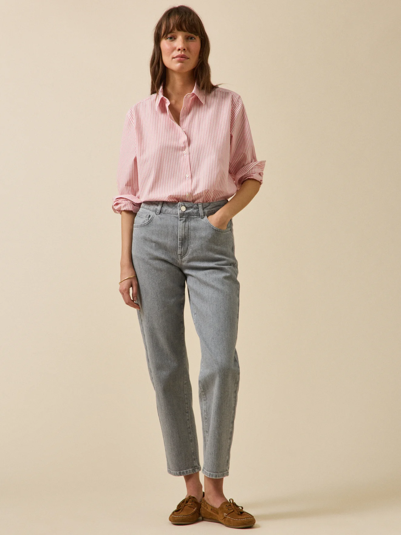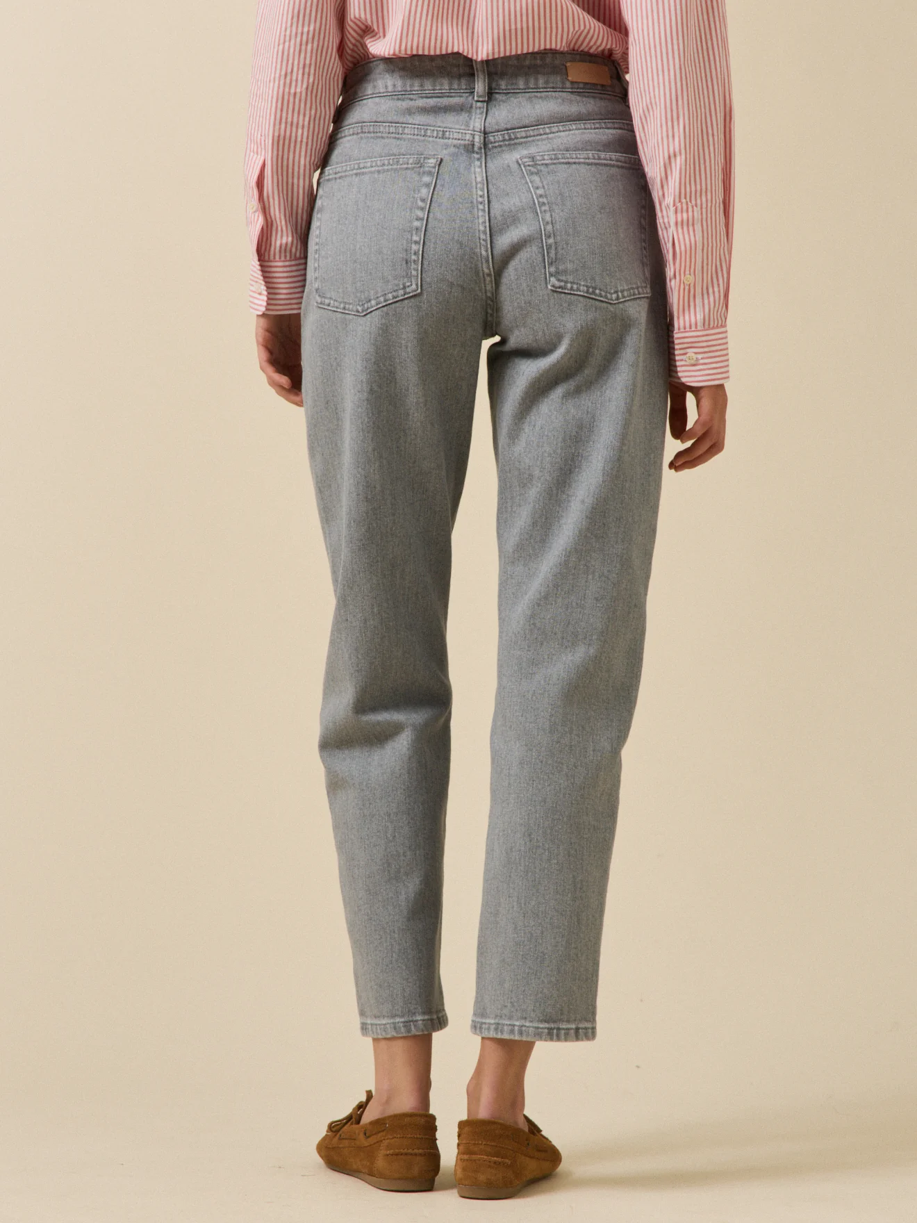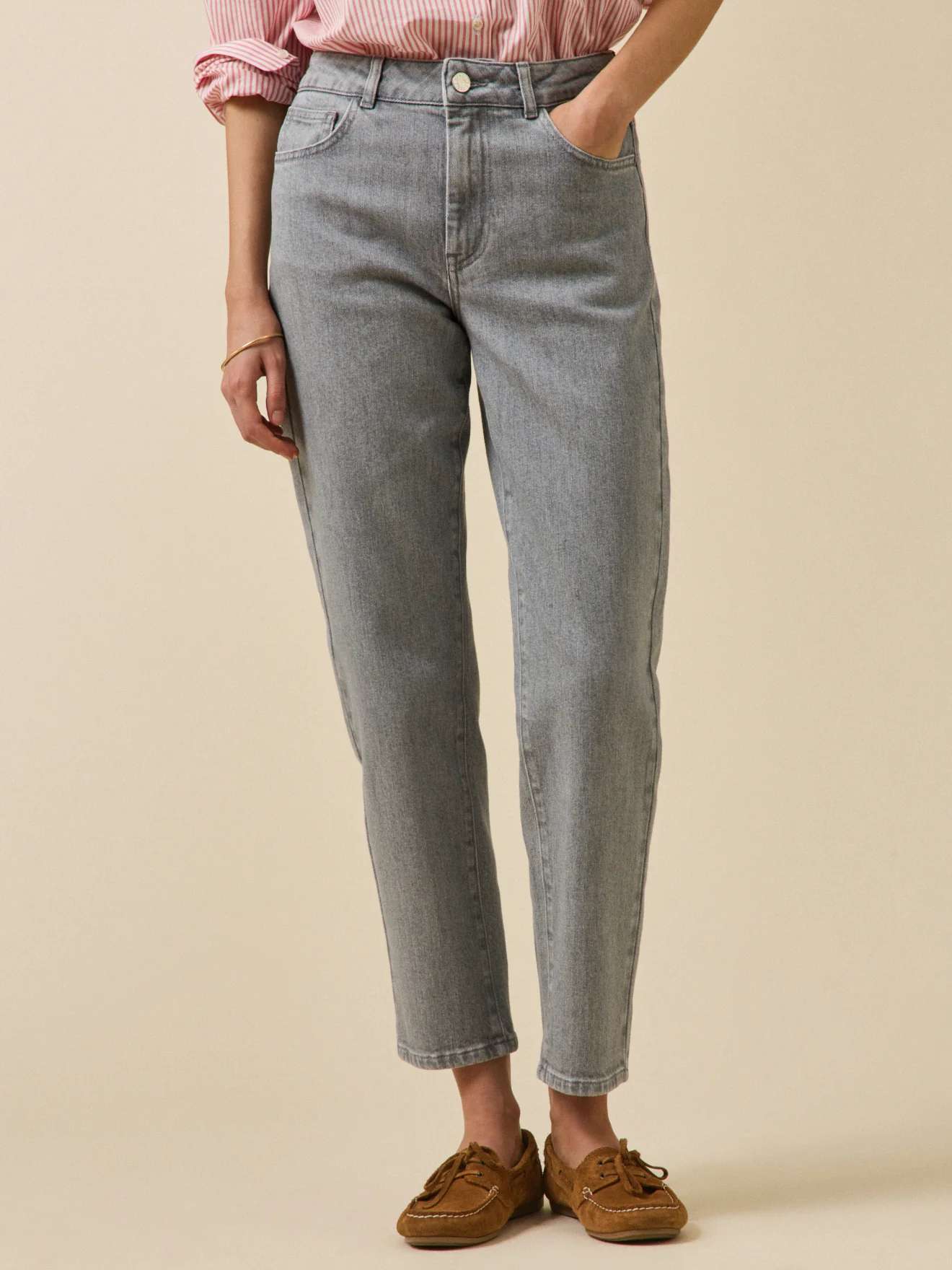 Une ligne plus galbante, une coupe plus féminine, un look plus urbain, l’évidence du gris clair. En version mom, un jean à porter sans modération, au bureau comme en week-end, chic ou décontracté.