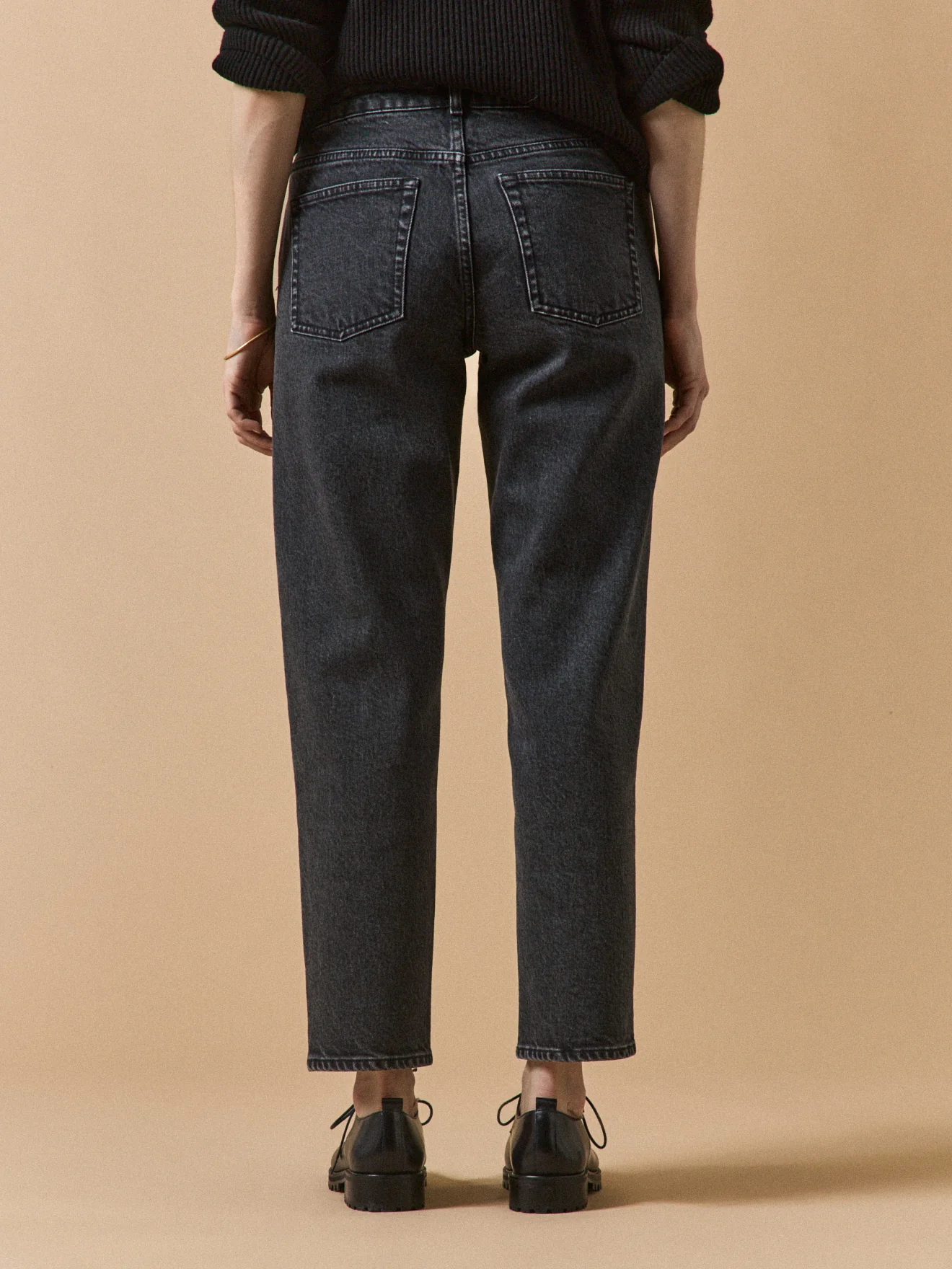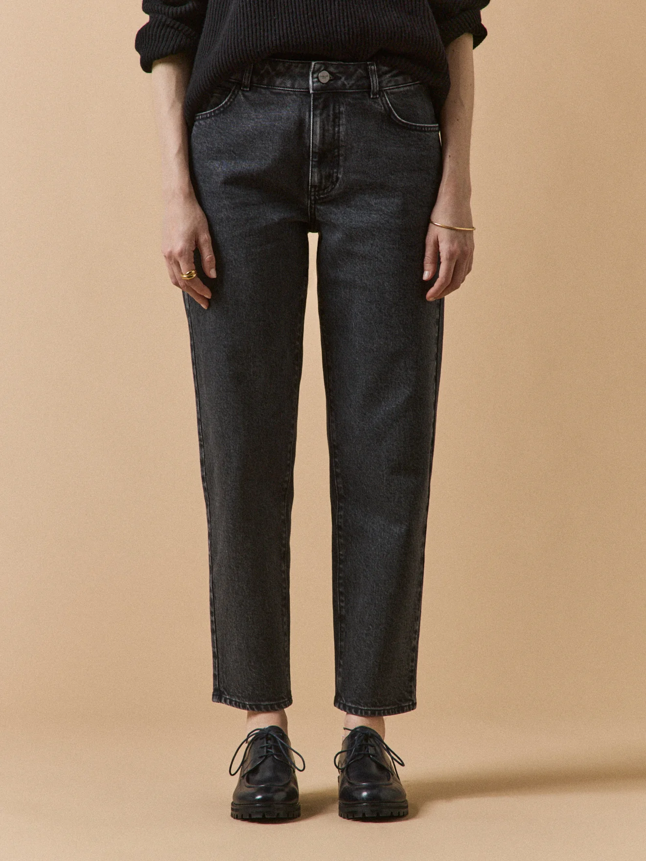 Une ligne plus galbante, une coupe plus féminine, un look plus urbain. Sur un coloris foncé, le jean mom compose avec tous les styles.