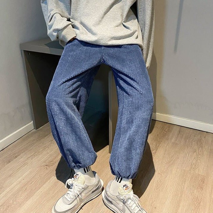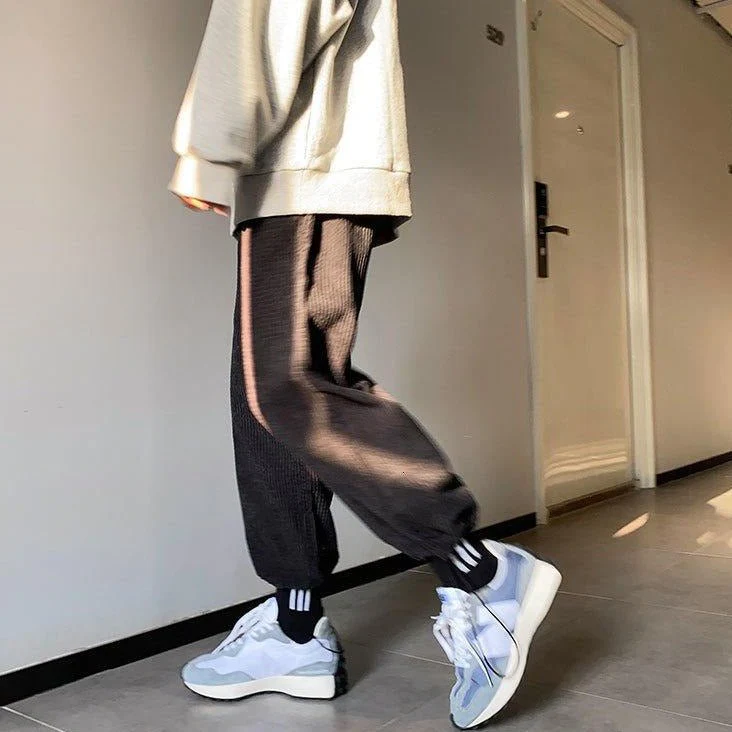 Voici un jogging parfait pour les amoureux du confort et du style. Ce jogging large gaufre est idéal si vous voulez vous habiller chaudement en gardant un look coréen. Ce pantalon est doux, confortable et vintage.