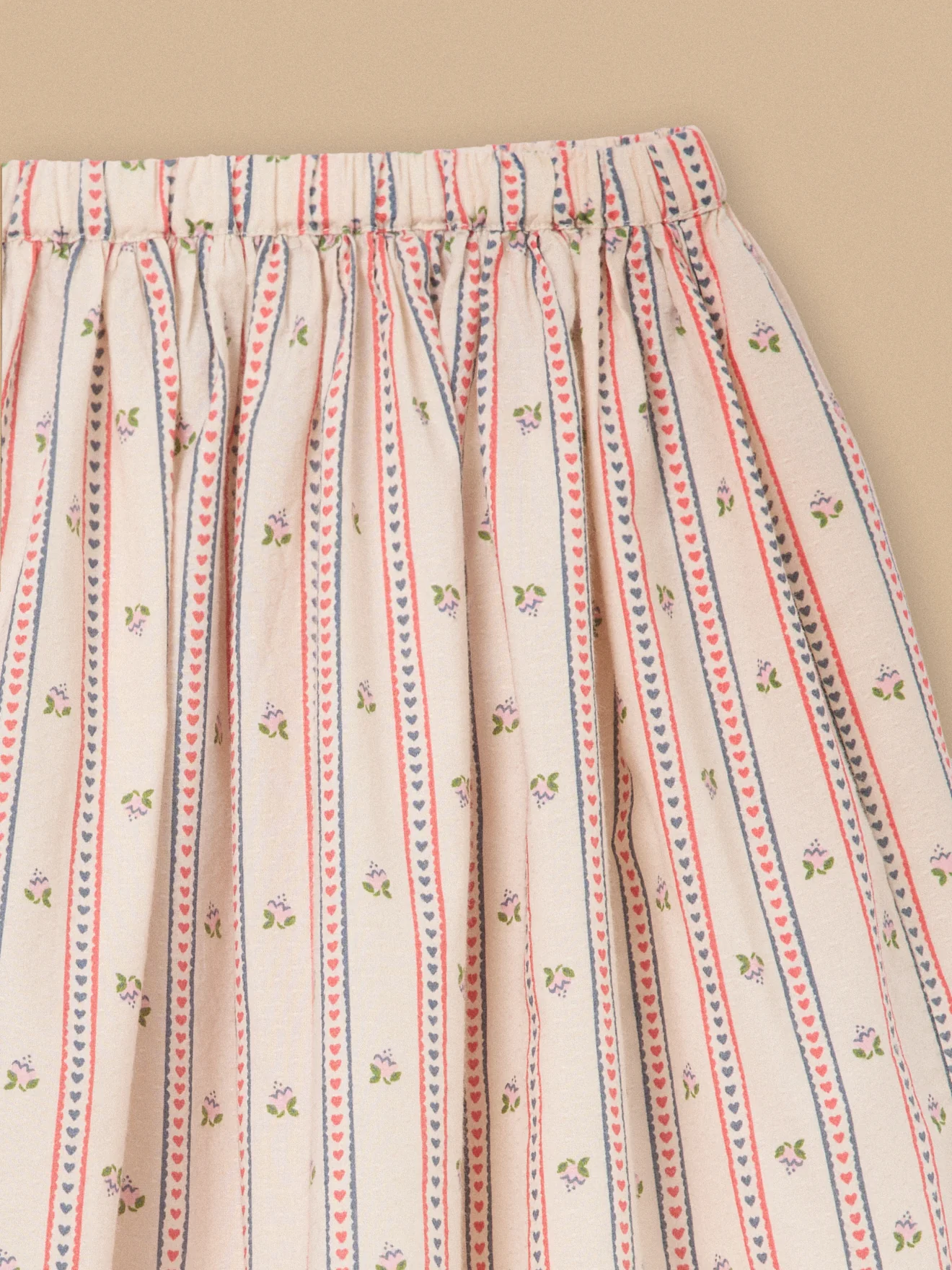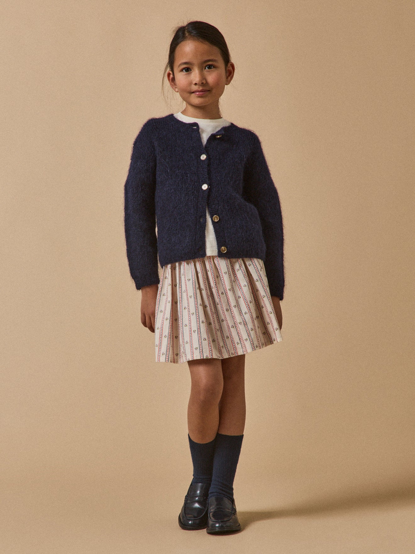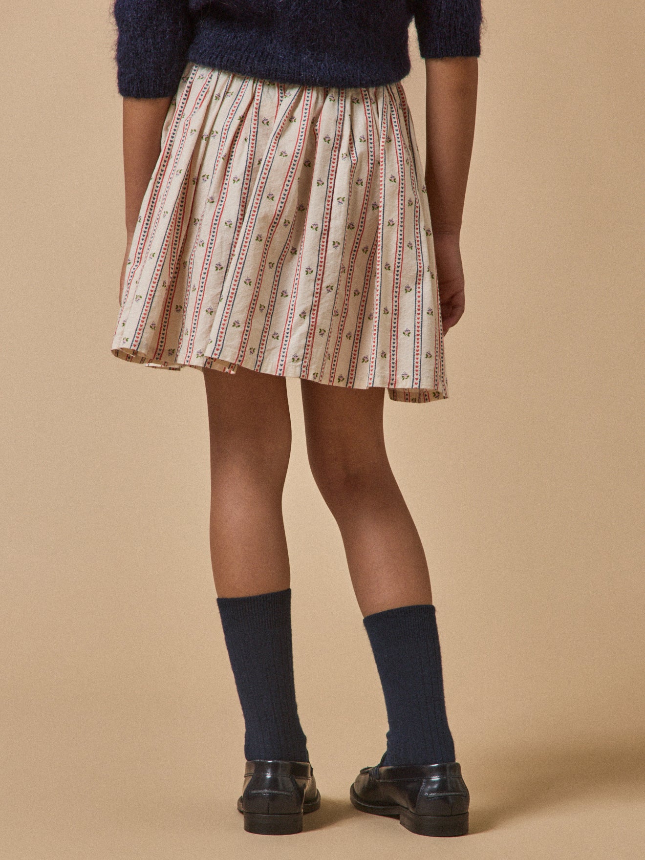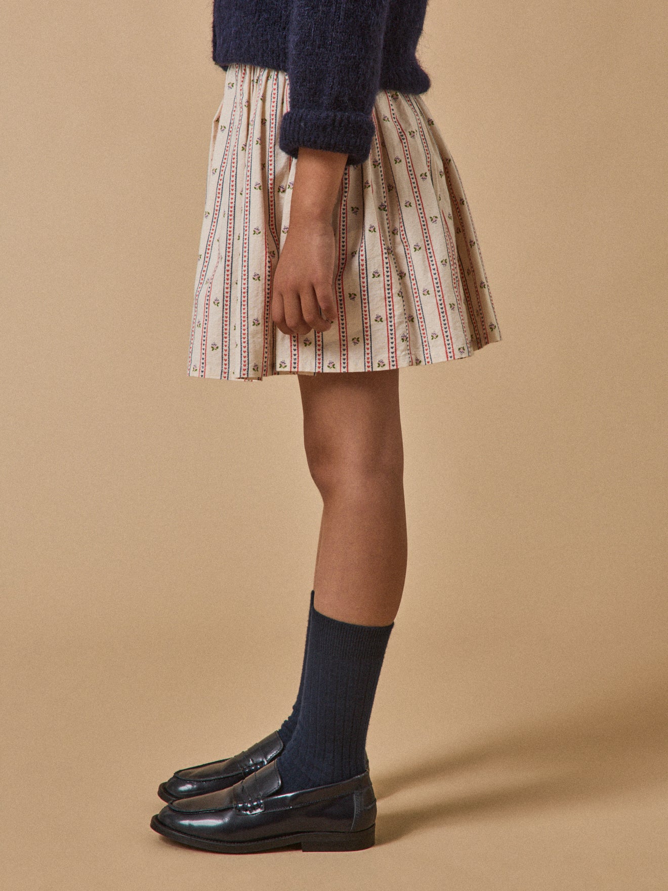 Une jupe de belle ampleur et au tissu reliefé. Taille élastiquée Non doublée Longueur mi-cuisses