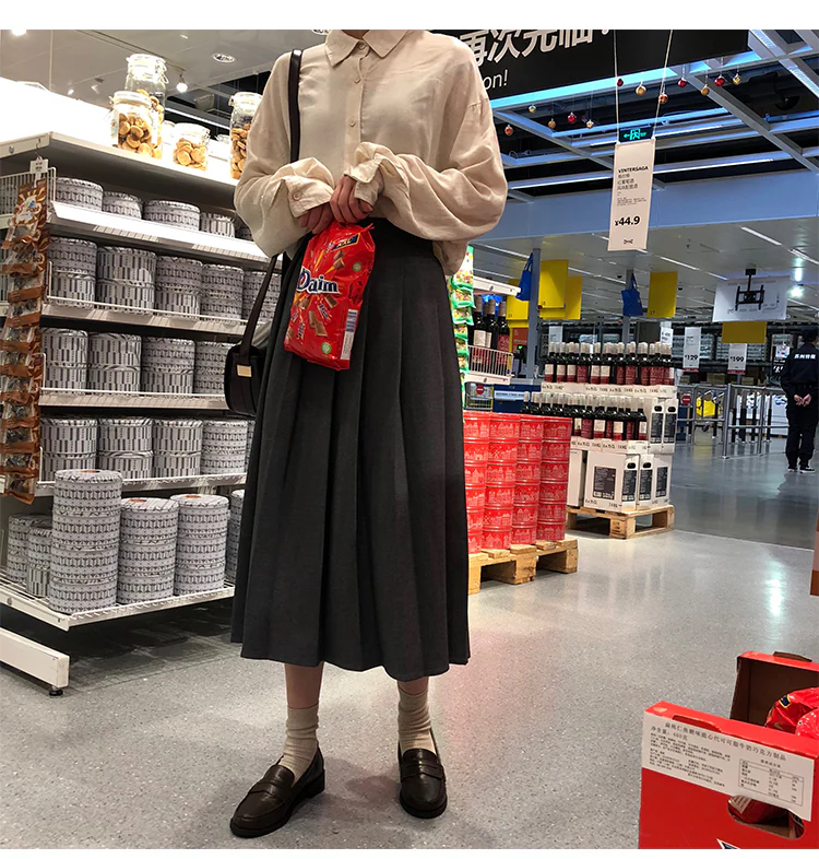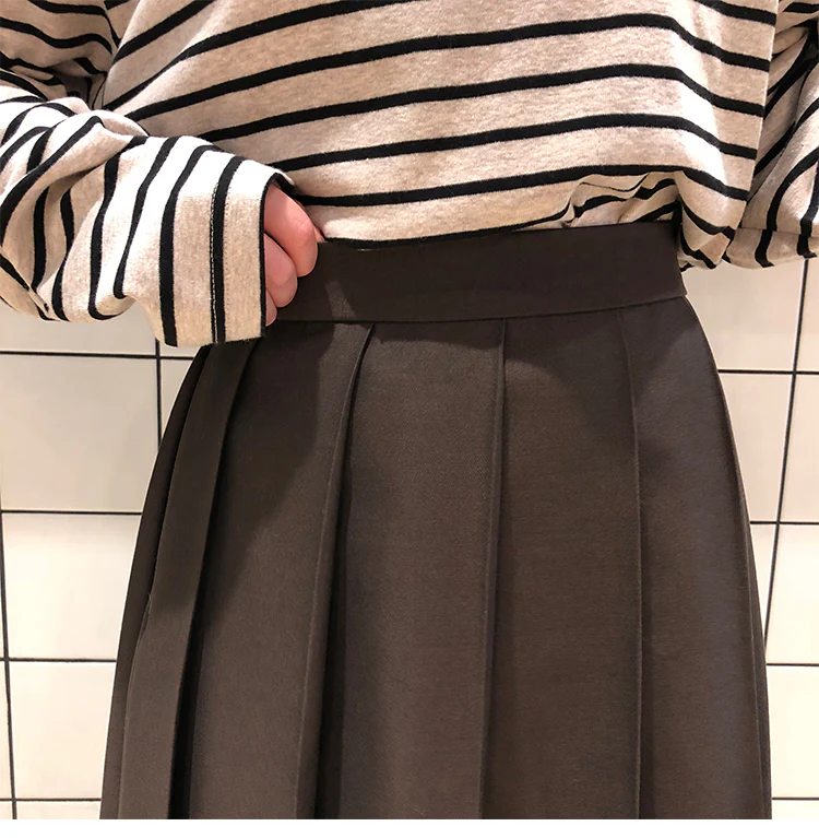 Cette jupe est inspirée des automnes coréens. Grâce à sa coupe longue et à son tissu agréable, elle est idéale pour sortir. Cette jupe longue est plissée comme beaucoup de modèles coréens.