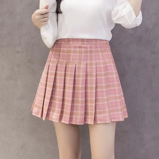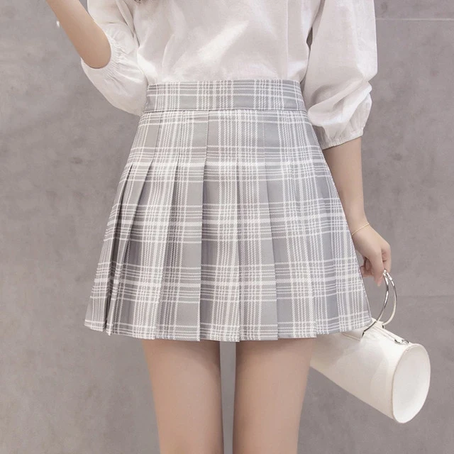 - Type : Mini-jupe, Plissée, à carreaux. Une version moderne des jupes classiques d’écolière.