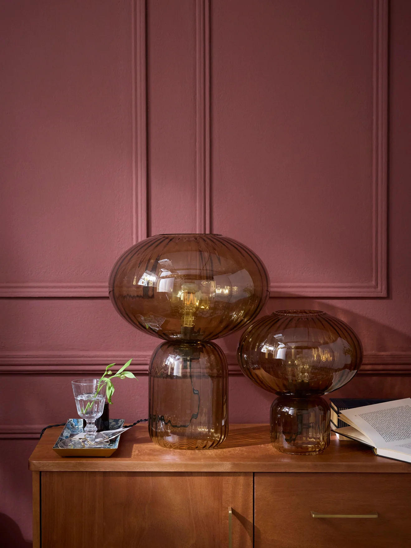 Lampe Martin en version XL. Grande lampe à poser en verre teinté et ciselé. Inspiration des années 50, fabriquée au Portugal.