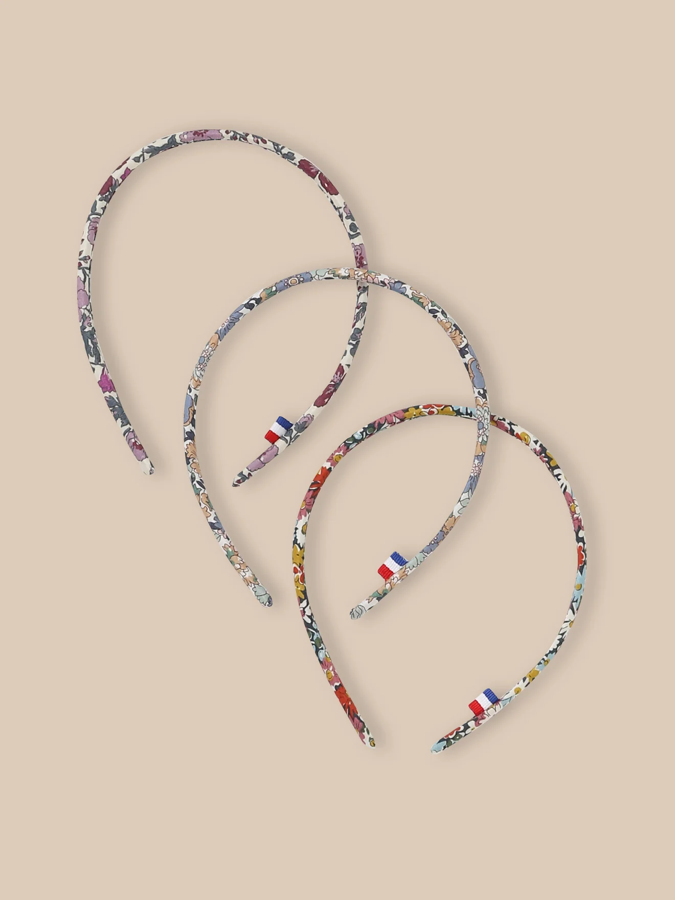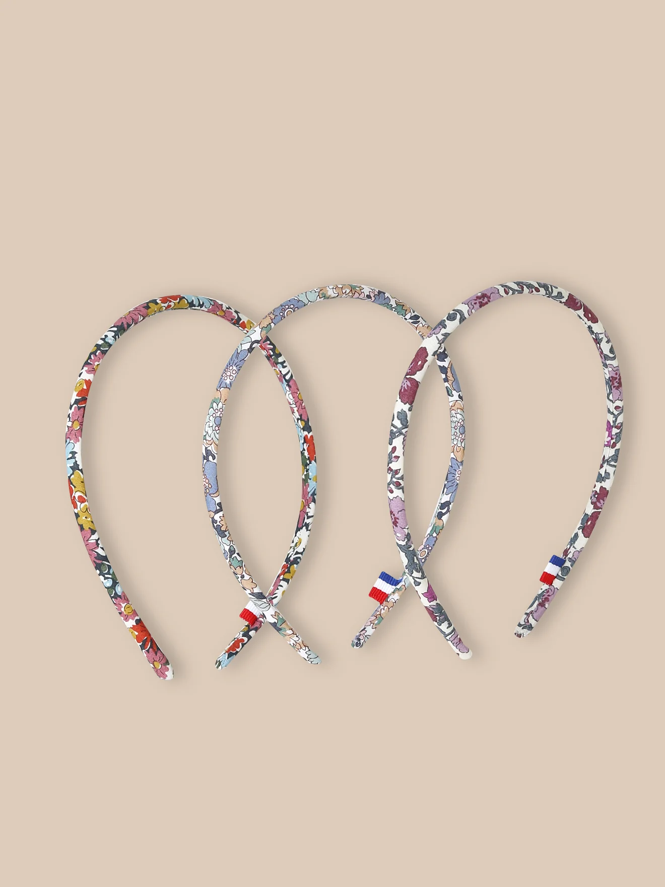 Ensemble de 3 serre-têtes en tissu Liberty, de délicats accessoires pour embellir les coiffures de votre enfant.