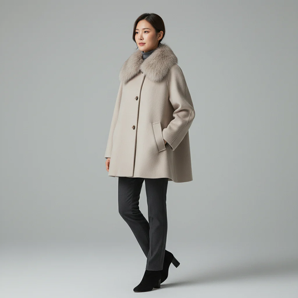 - Type : Manteau long, coupe ample. Assure une silhouette confortable et élégante.