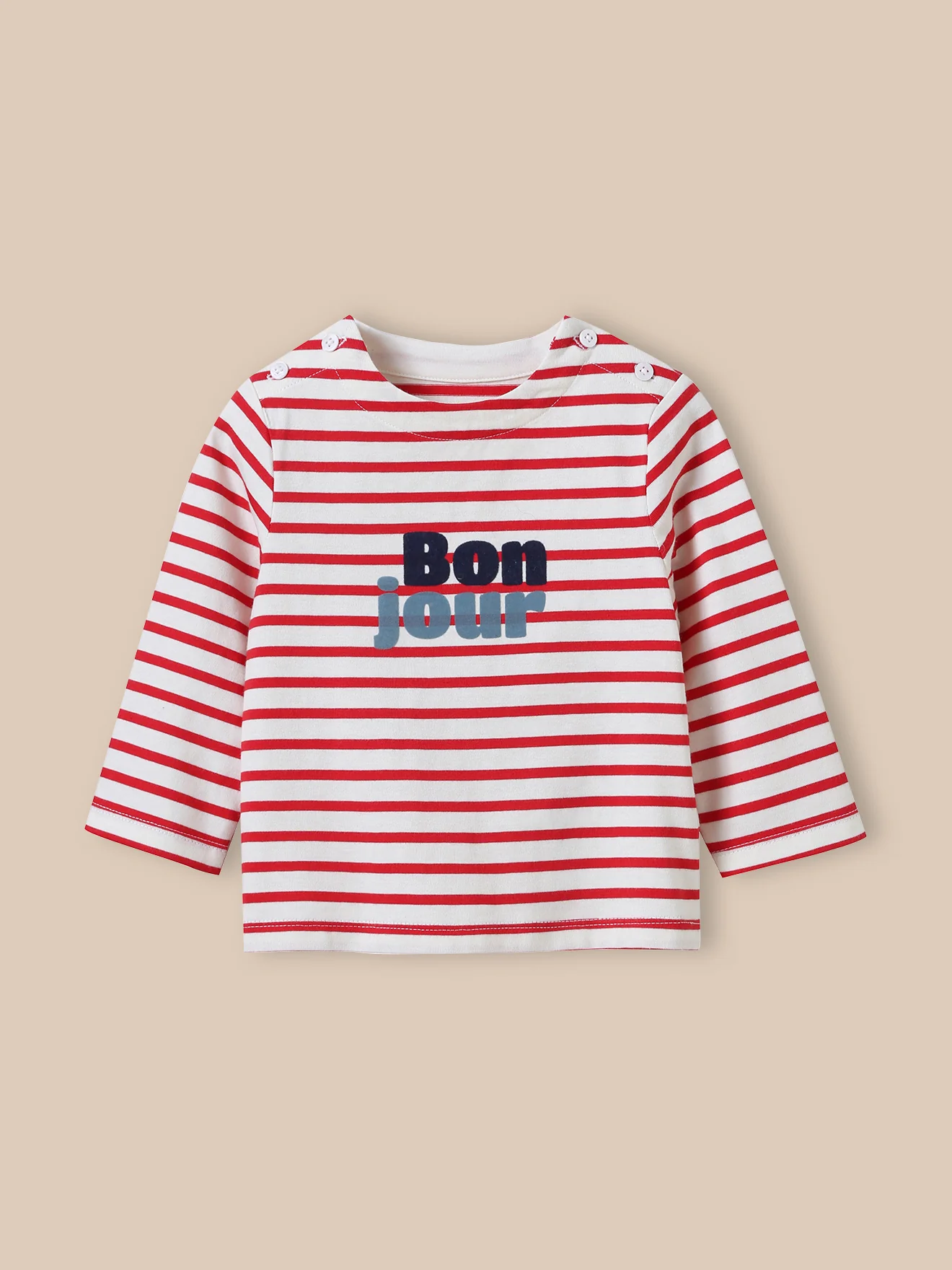 Un tee-shirt marinière pour bébé « en vadrouille » ! Un note de poésie et d’humour pour l’été.