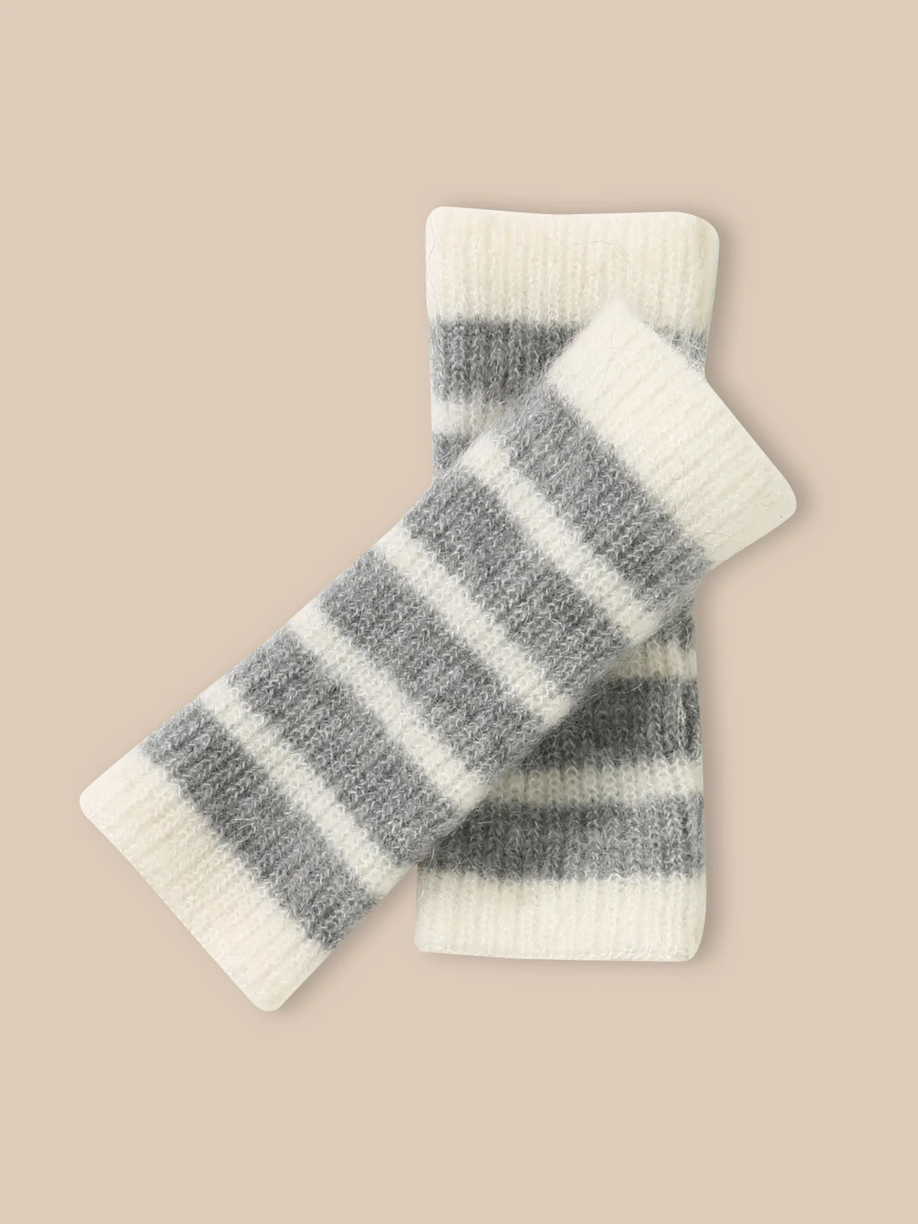 Mitaines rayées en laine et mohair, chaleur et liberté de mouvement.
