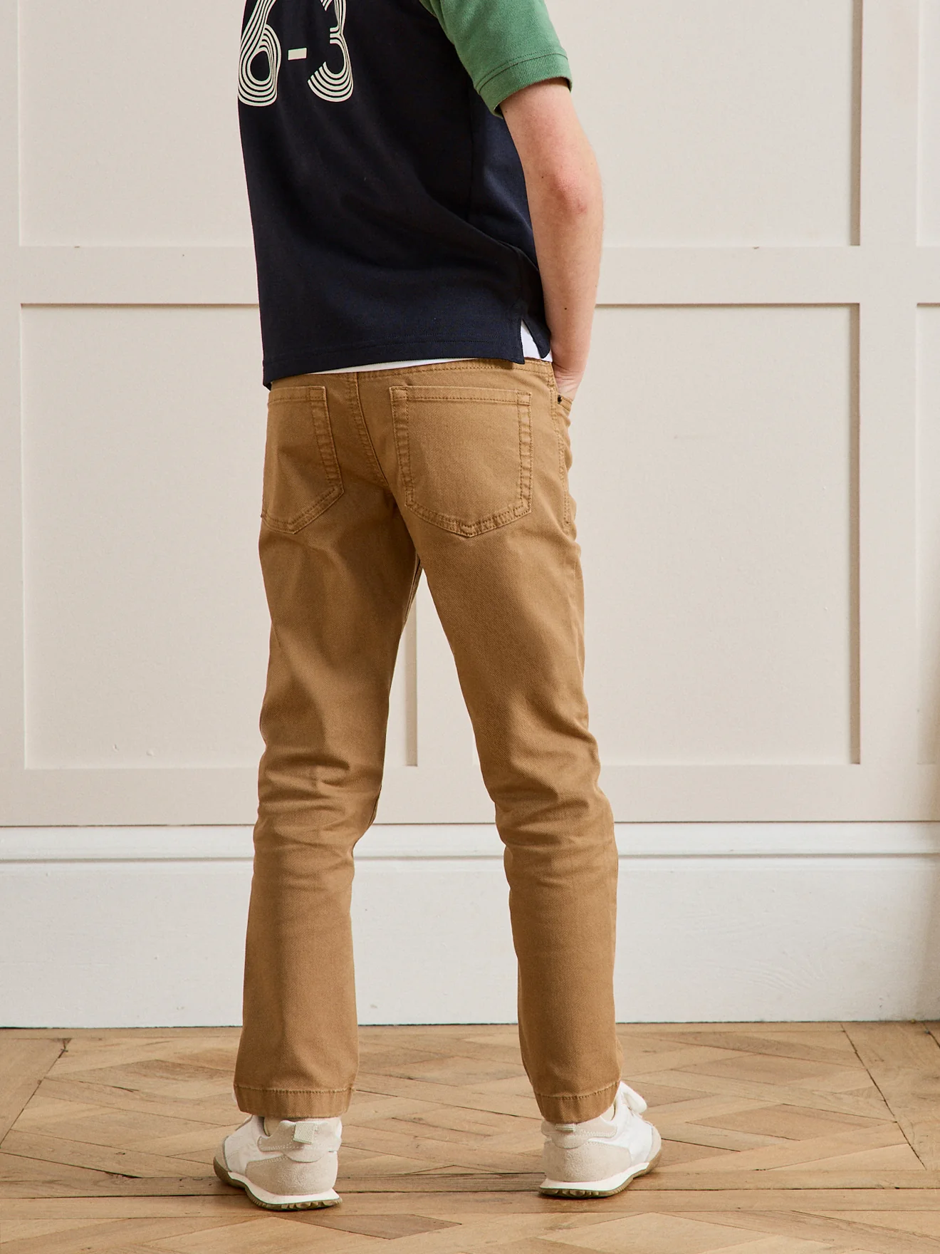 Inspirant, notre traditionnel 5 poches se décline dans une gamme de coloris faciles à associer pour une silhouette raffinée. Coupe 5 poches Taille ajustable de l’intérieur par élastique boutonné. Pour un habillage facilité, nos pantalons ont un bouton-pression jusqu’à la taille 9 ans