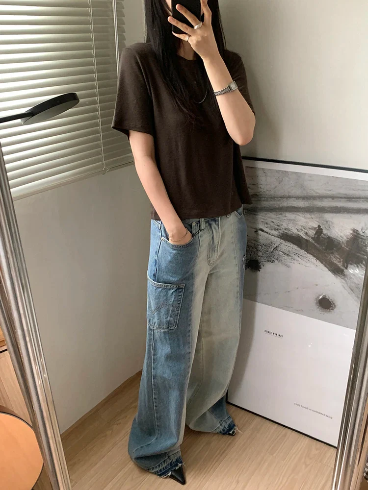 Adoptez un style unique avec notre pantalon denim patchwork vintage, parfait pour capturer l’essence du streetwear coréen. Avec sa taille haute et ses poches pratiques, il offre à la fois confort et style. ☀️