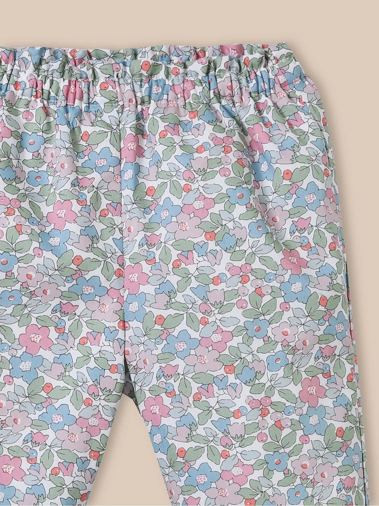 Avec son imprimé délicat et son léger ouatinage, ce pantalon en tissu Liberty est parfait pour la saison. Tissu Liberty BESTY BERRY doublé et légèrement ouatiné Fin volant à la taille élastiquée