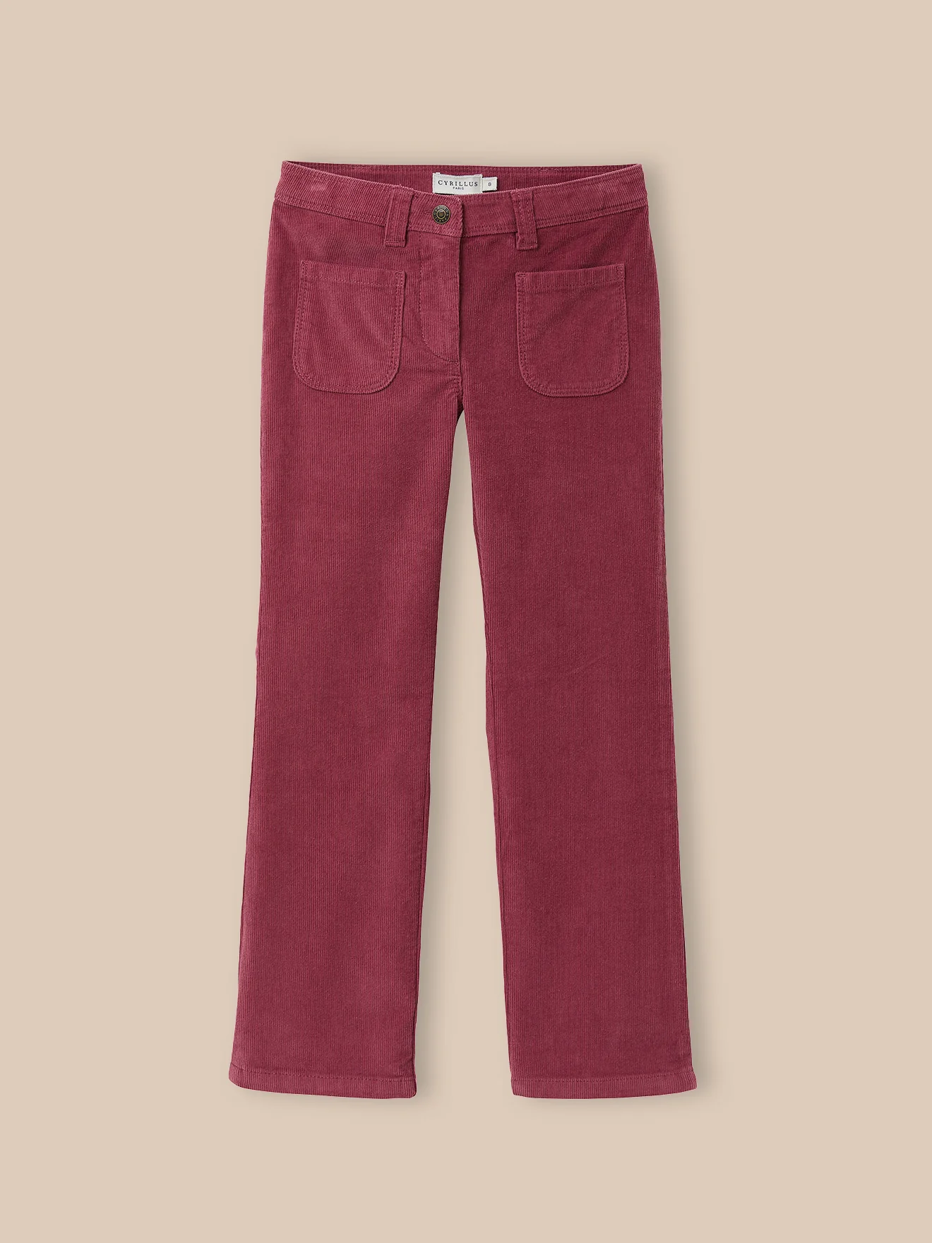 Coupe large et évasée, taille haute, poches plaquées et velours côtelé font de ce pantalon une pièce tendance esprit vintage. Incontournable cette saison. Taille ajustable de l’intérieur par élastique boutonné. 2 poches devant, 2 poches dos Fermeture par bouton et glissière. Pour un habillage facile, nos pantalons ont un bouton-pression jusqu’à la taille 10 ans.