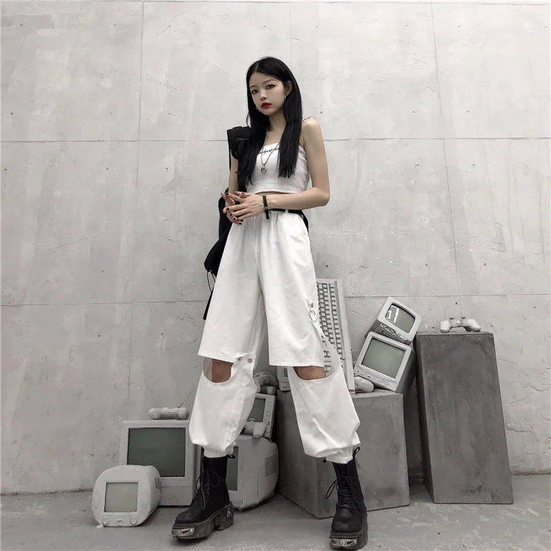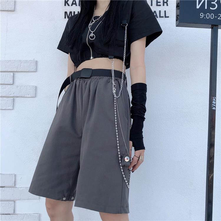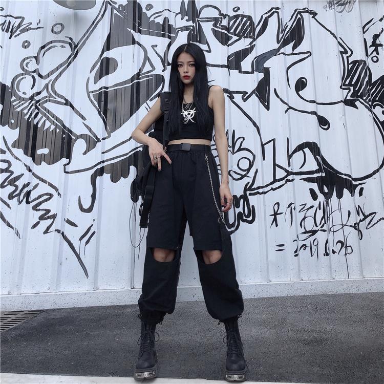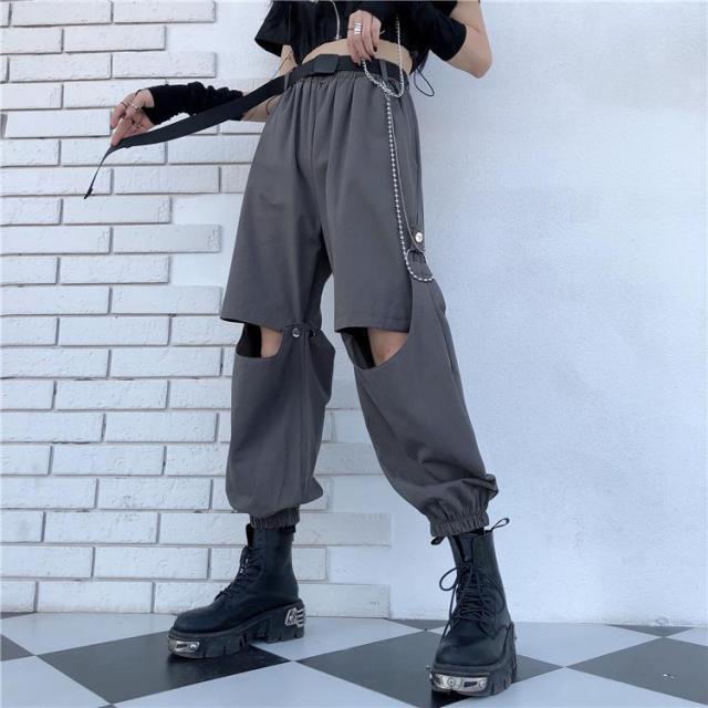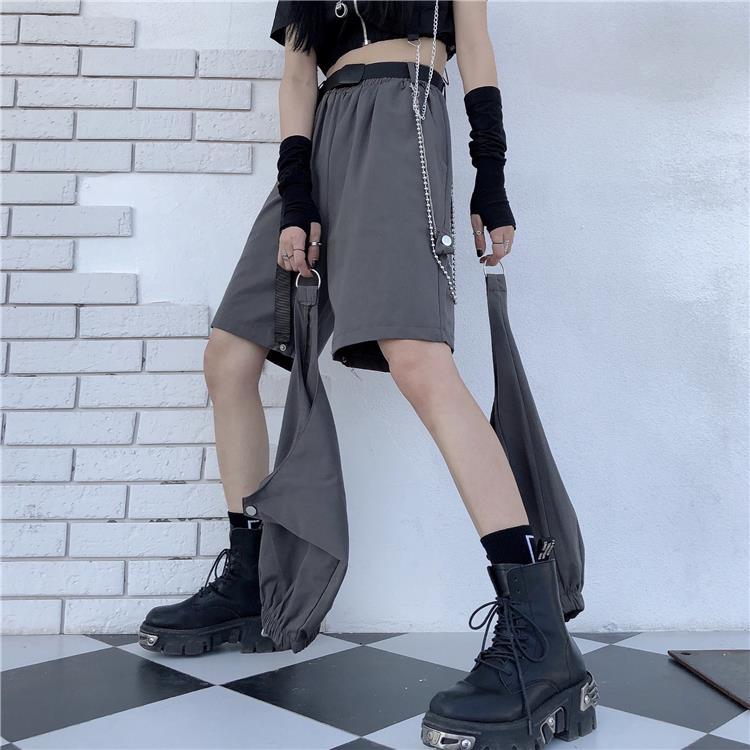 Voici un pantalon punk qui se transforme en short. Ce pantalon est séparé en deux parties, il est très pratique si vous voulez un vêtement multifonction avec un style punk proche du streetwear coréen. C’est un bas ouvert aux genoux qui plait aux jeunes rebelles.