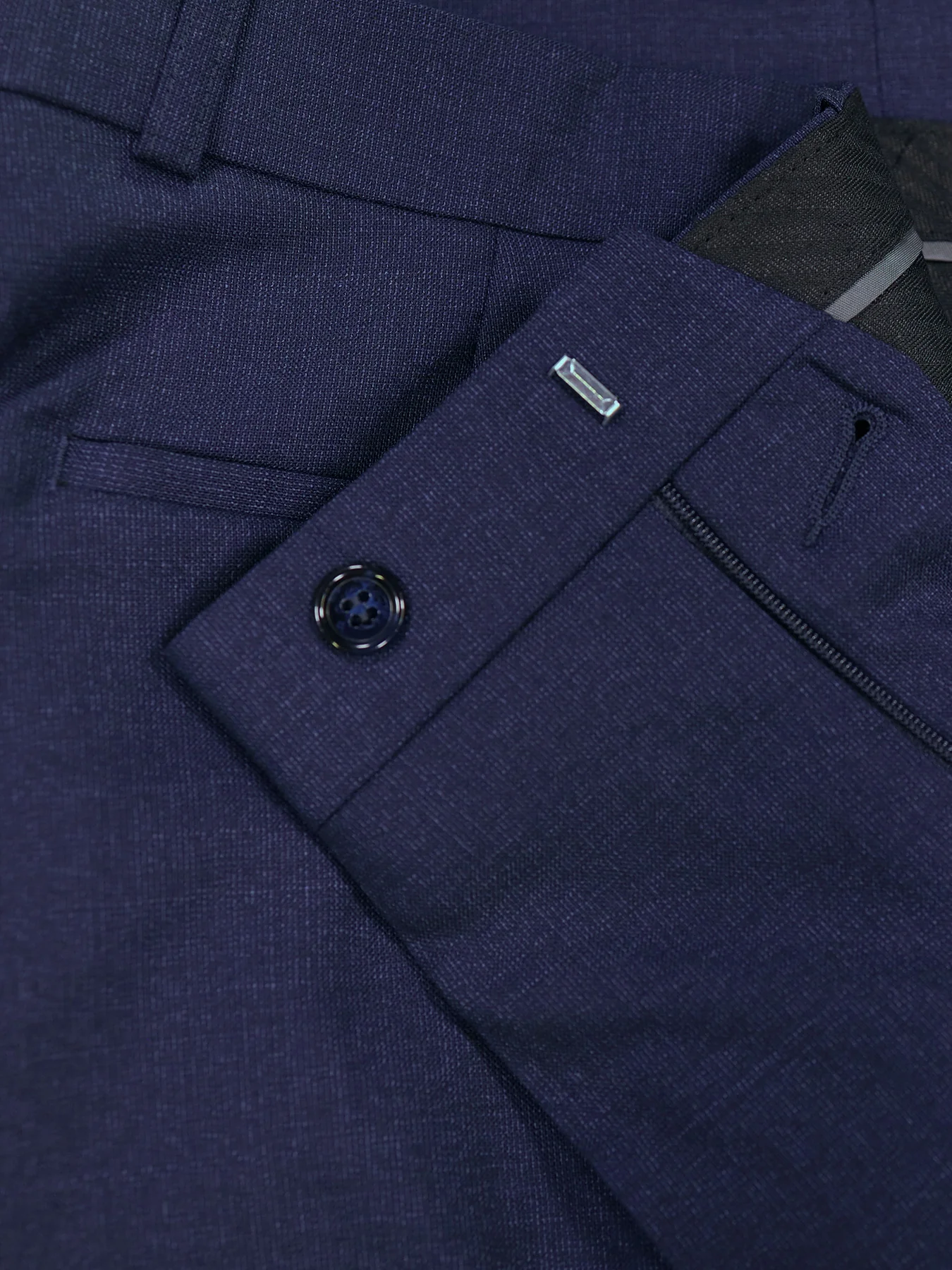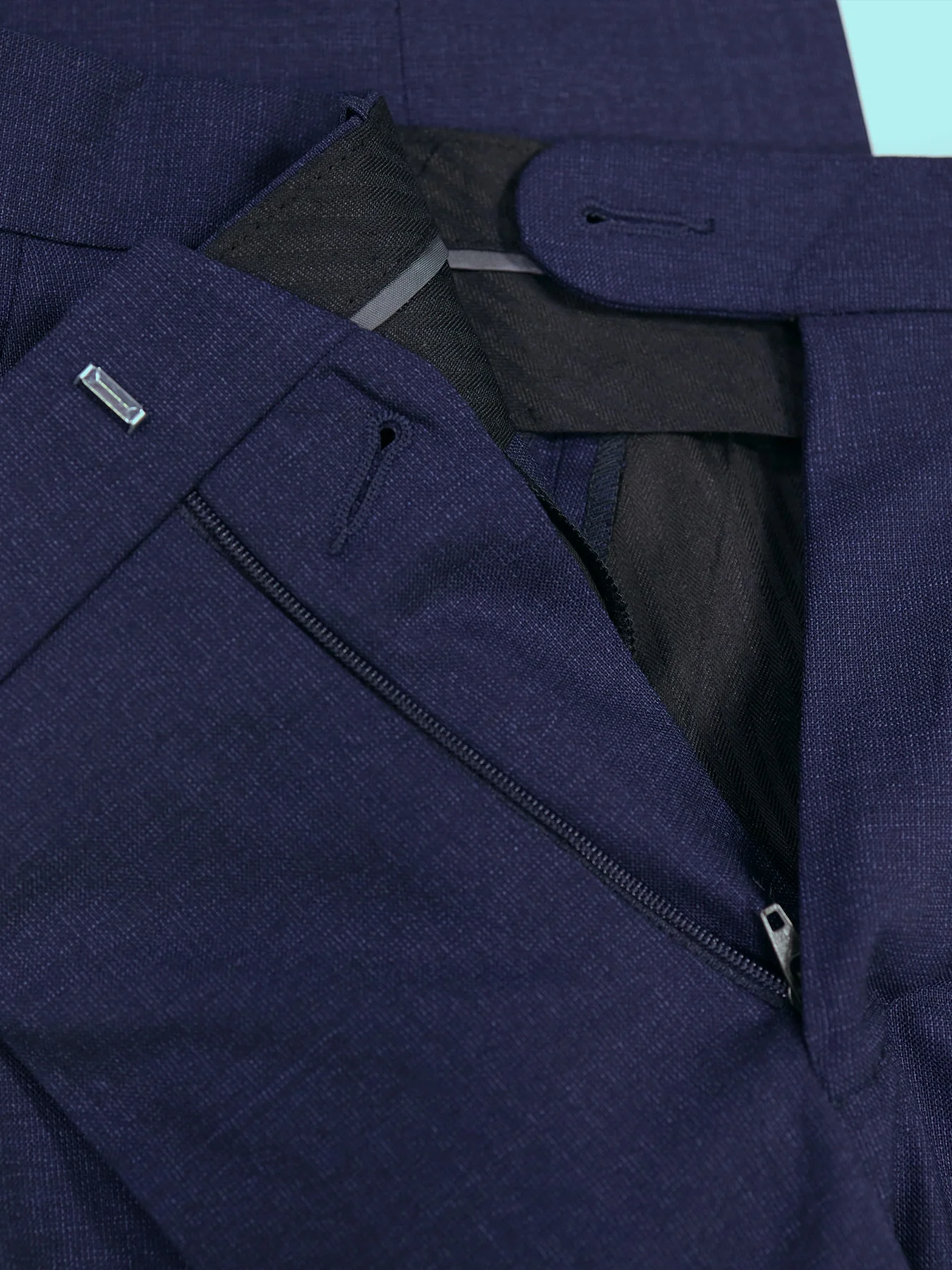 pantalon siza natté en pure laine super 130 fil à fil marine