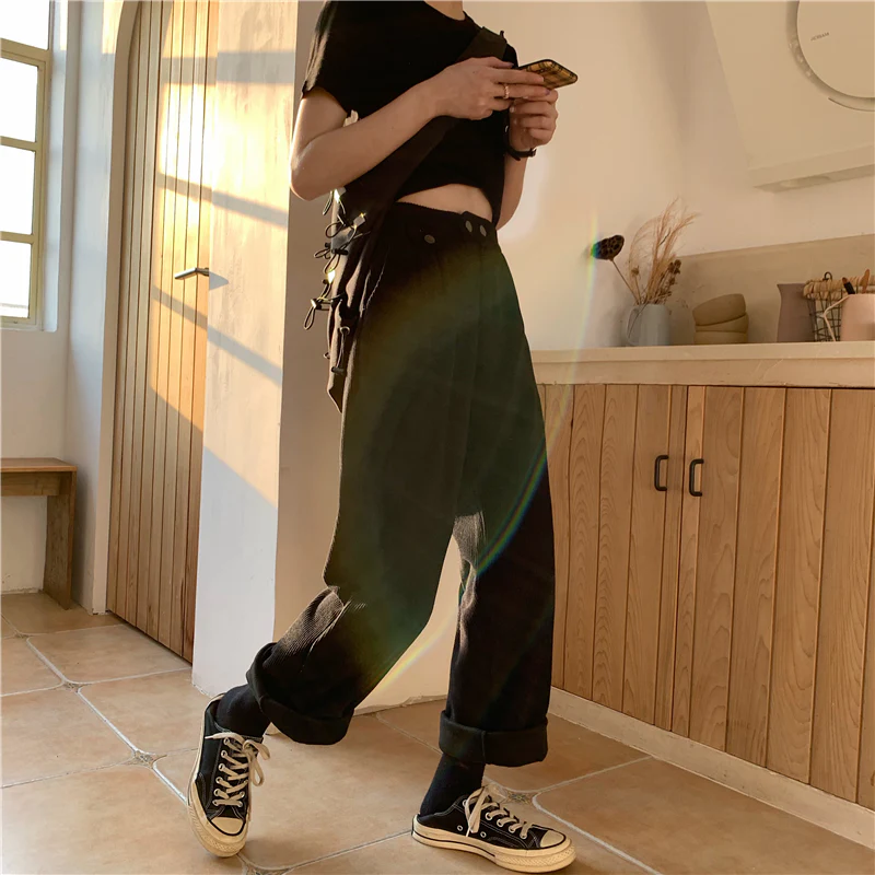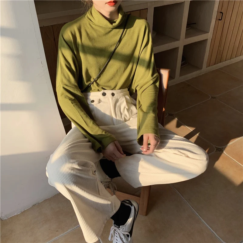 Un pantalon taille haute très à la mode en Corée du Sud. Doux et confortable, il est idéal pour aller en cours et sortir.