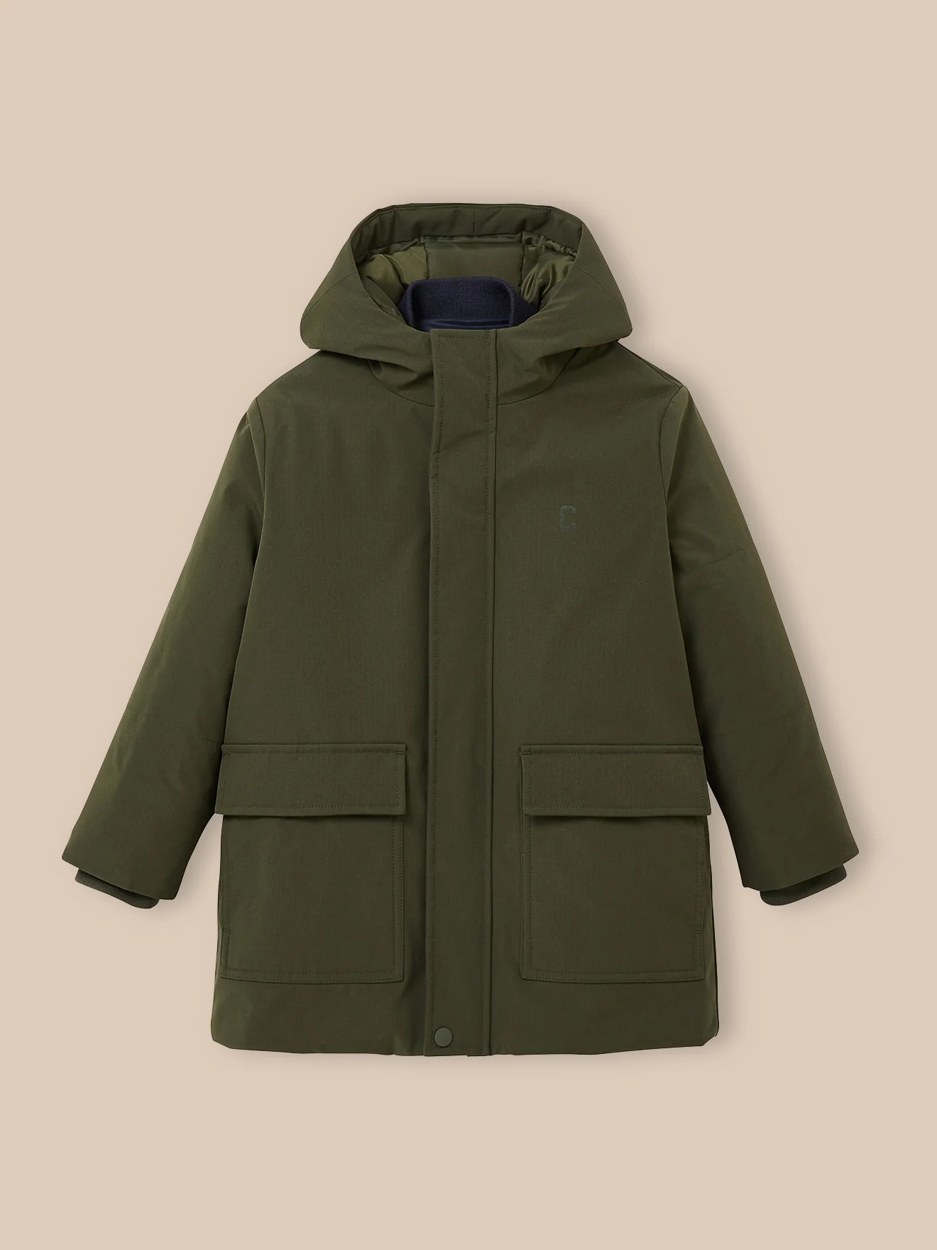 - Etiquette nom. Patte accroche manteauBlouson matelassé amovible. Fond de poches en tissu polaire. Fermeture par glissière. Longueur mi-cuisses