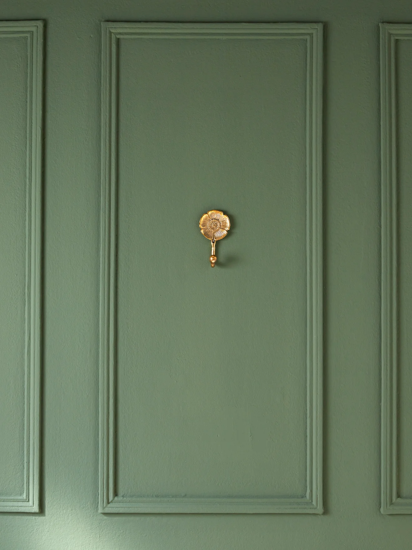 Crochet en métal doré rehaussé d’une fleur finement moulurée. Le style d’antan influence le charme de cette patère.