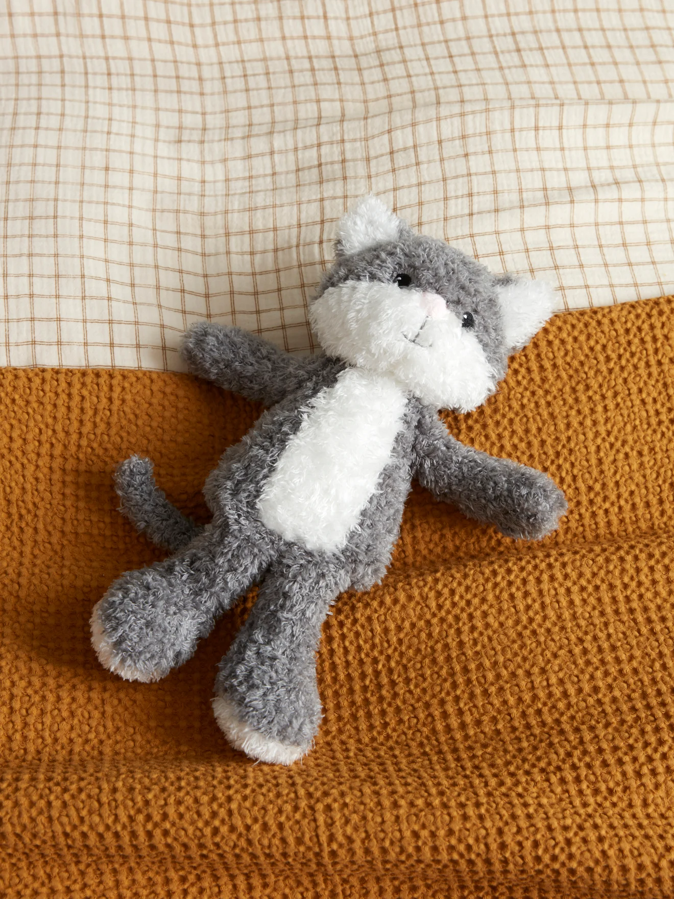 Peluche chat aussi attendrissante que douce. Son pelage en bouclette gris et blanc est d’une douceur extrême. Sa petite frimousse est délicatement brodée. Un doudou tout doux et tout moelleux.