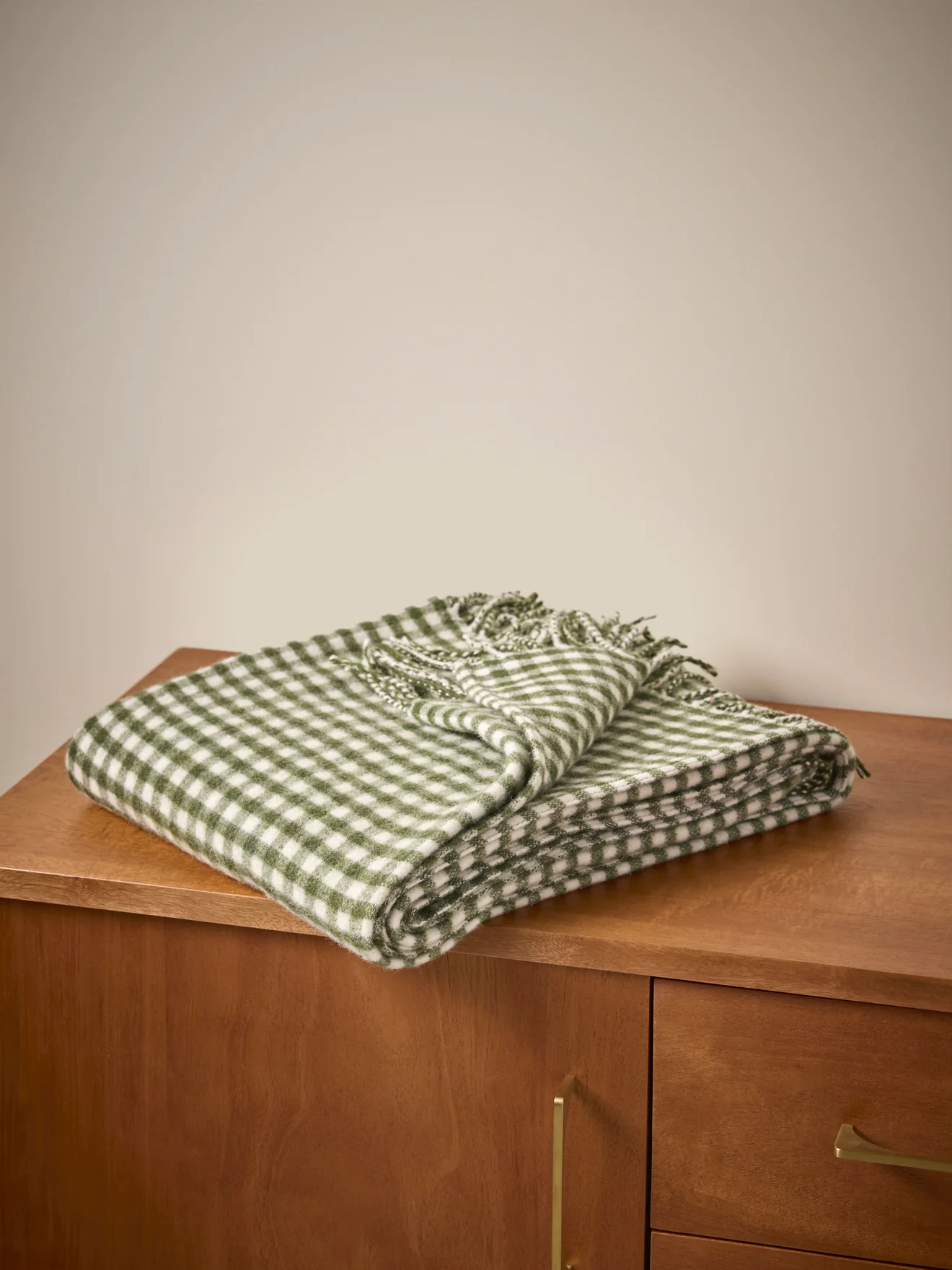Indémodable motif vichy aux tonalités tendres et chaleureuses. Plaid au toucher doux, tissé au Portugal.