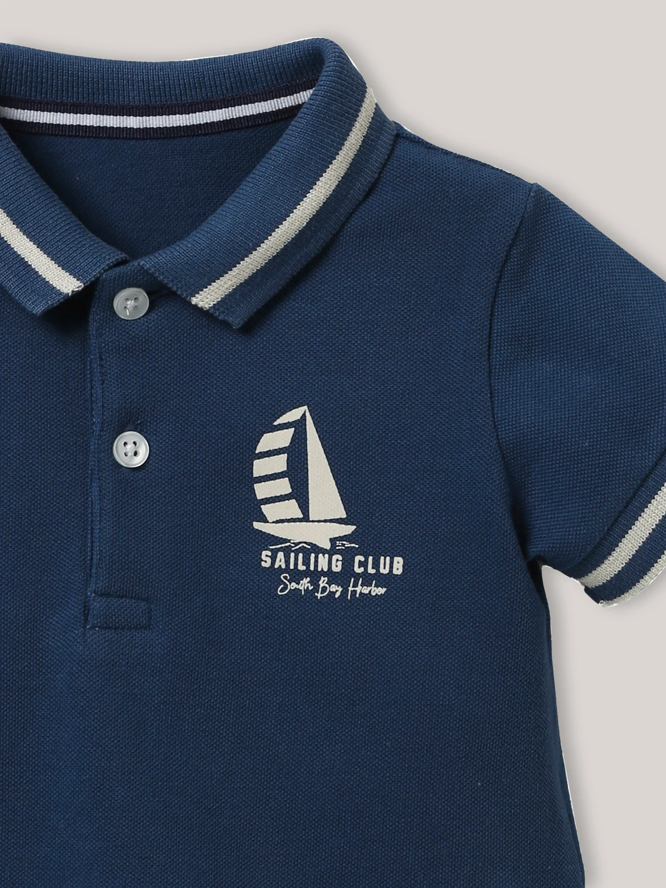 Ce polo en maille piquée, orné d’un motif voilier, revisite le style yachting avec modernité.