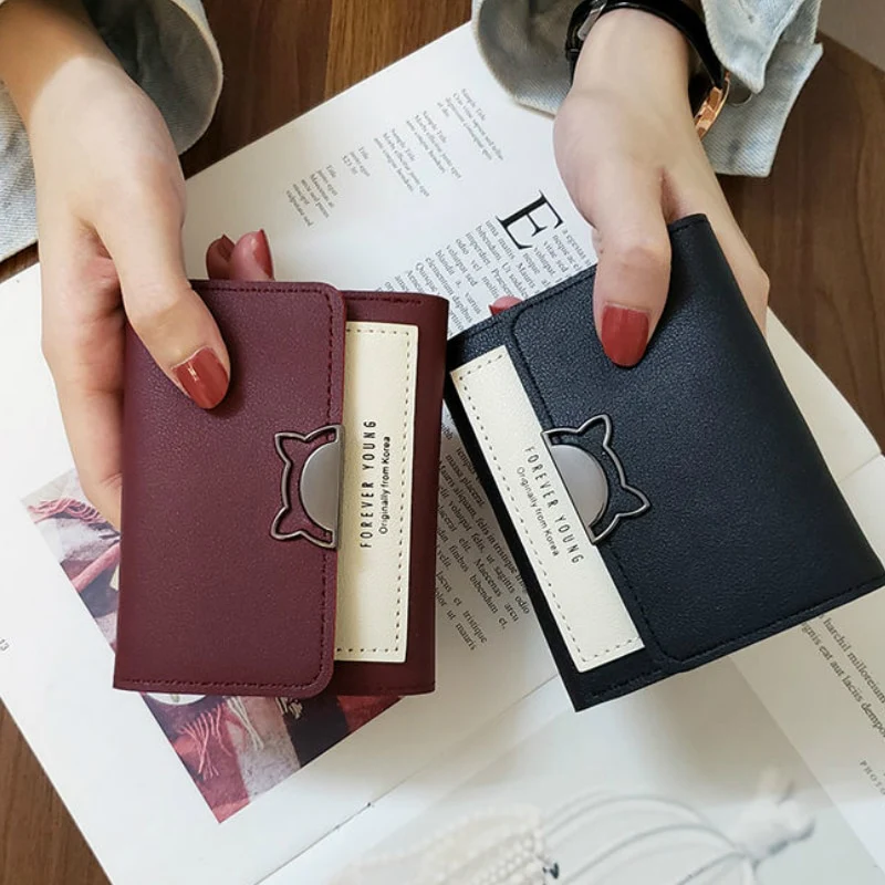 Couleur: Noir, Bleu Matière: Cuir PU Type: porte-cartes kawaii Style : mignon, kawaii