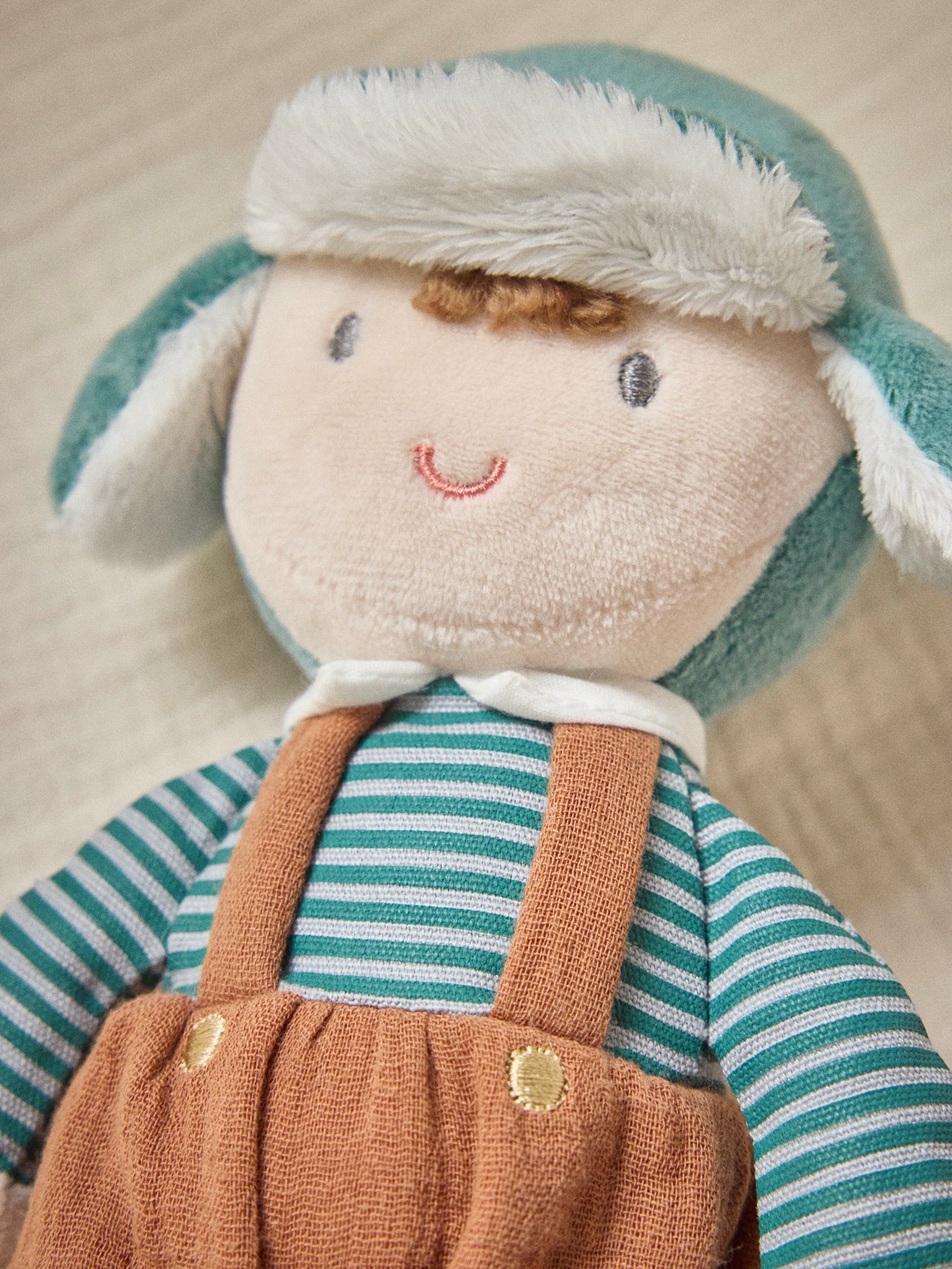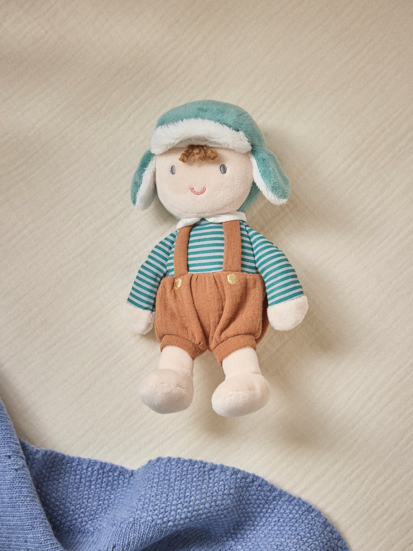Adorable petite poupée « garçon » en tissu et velours. Moelleuse, la poupée de chiffon Emile est facile à attraper, à câliner.