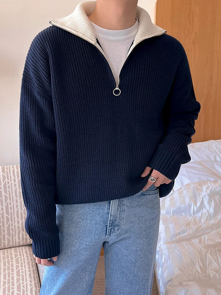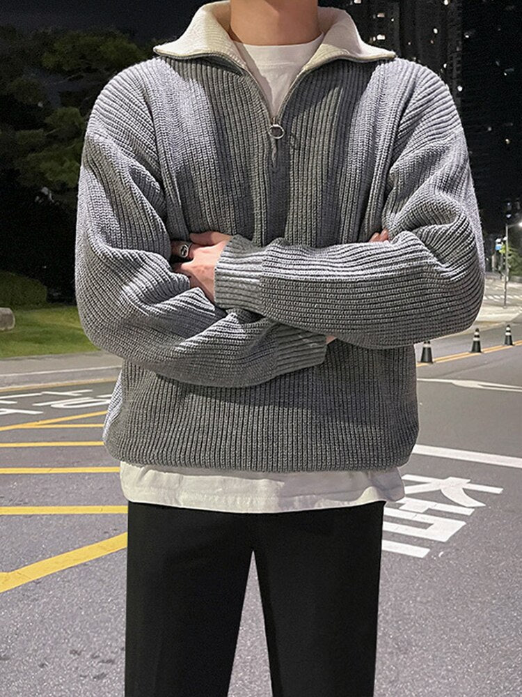 Couleur : Noir, Kaki, Gris, Bleu marine Style : Casual Type de motif : unicolore Type : À enfiler Type du col : Zip Longueur des manches : Longues Matière : 100% Polyester
