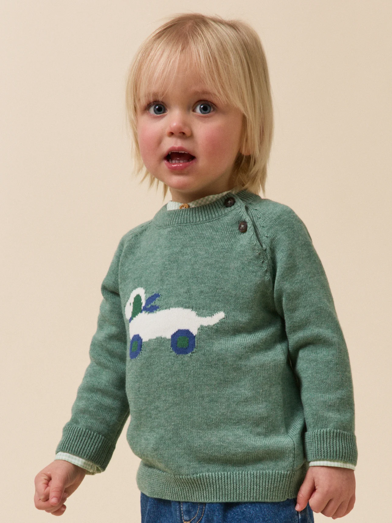 Un motif intarsia plein de poésie pour ce pull en coton biologique certifié.