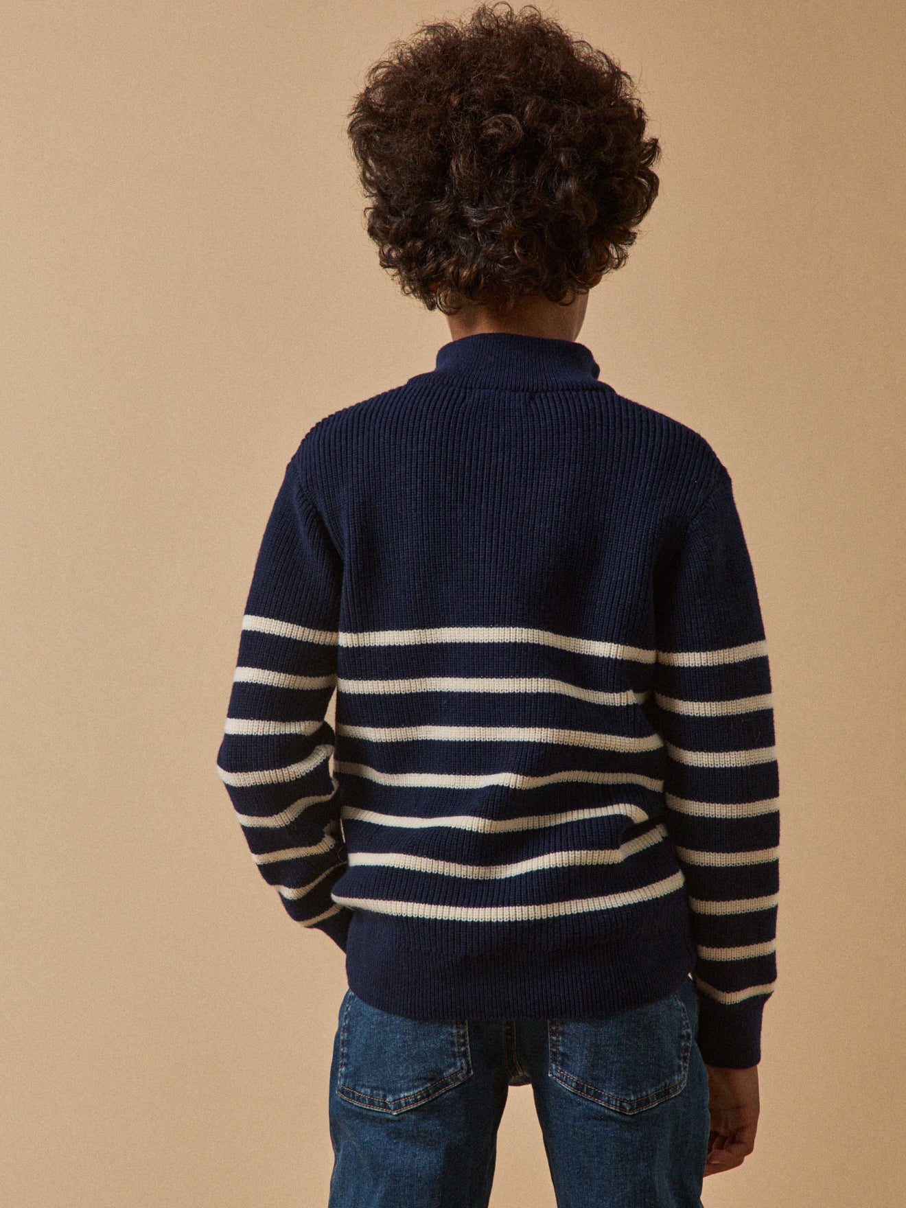 Avec son col montant zippé et sa maille perlée, ce pull revisite l’esprit marin dans une version moderne et élégante.