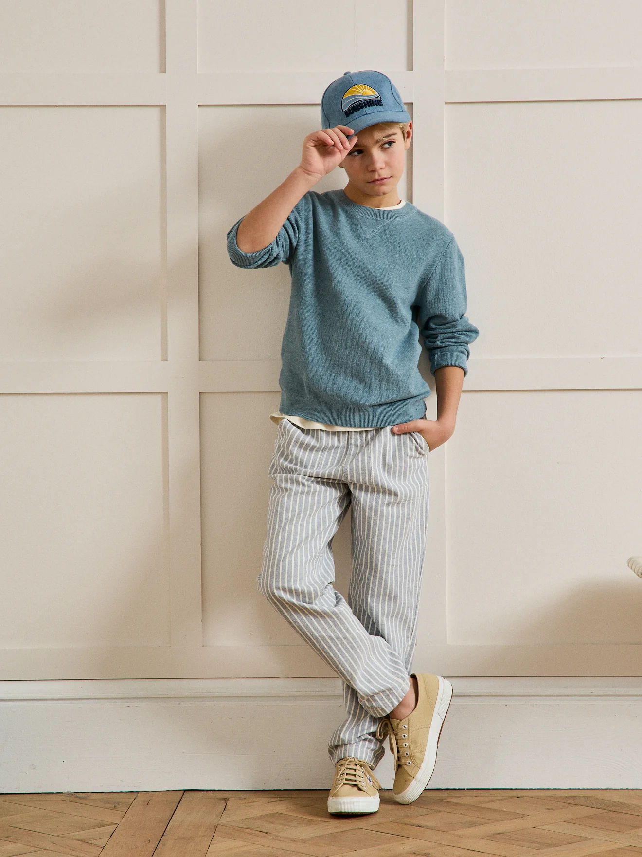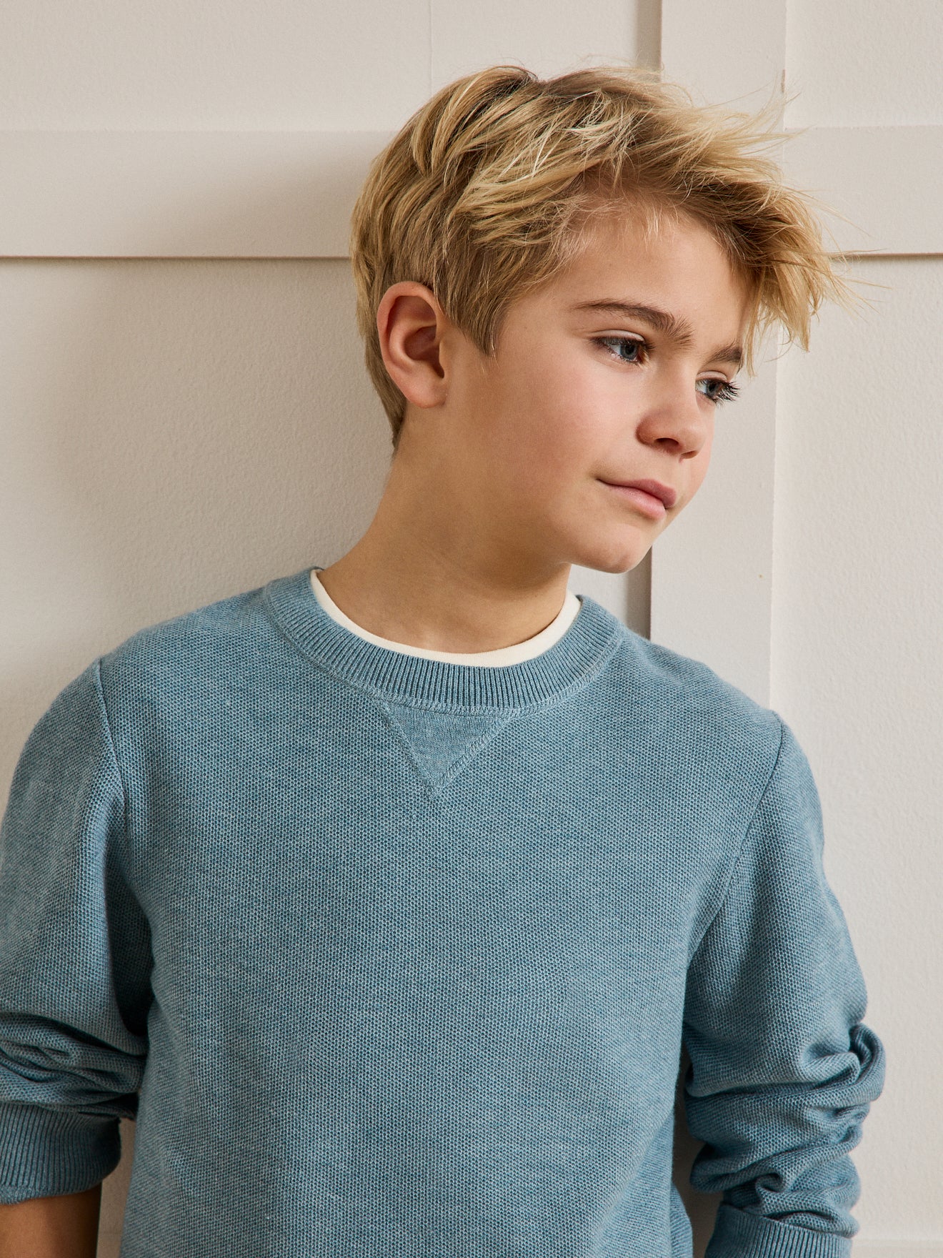 Faussement classique, le pull col rond se réinvente avec une maille fantaisie empruntée aux polos et reprend les codes du sweat avec sa découpe sous le col. Un essentiel retravaillé avec modernité, parfait pour une silhouette casual et toujours chic.