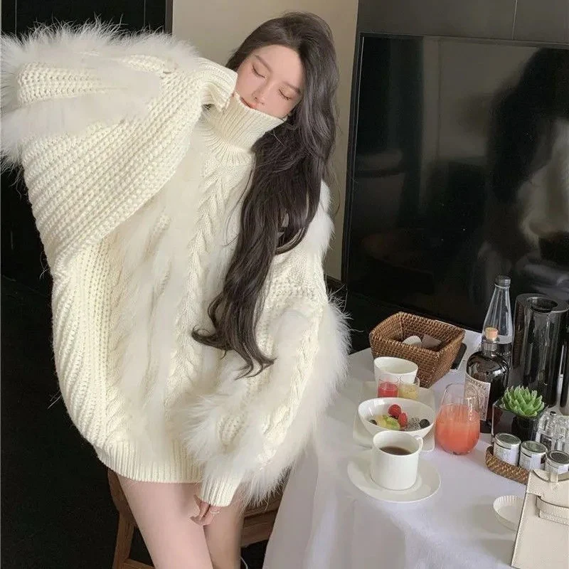 Découvrez notre pull tricoté coréen pour femme, alliant confort et style urbain. Ce pull à col montant et manches longues est parfait pour un look décontracté et élégant ! ✨