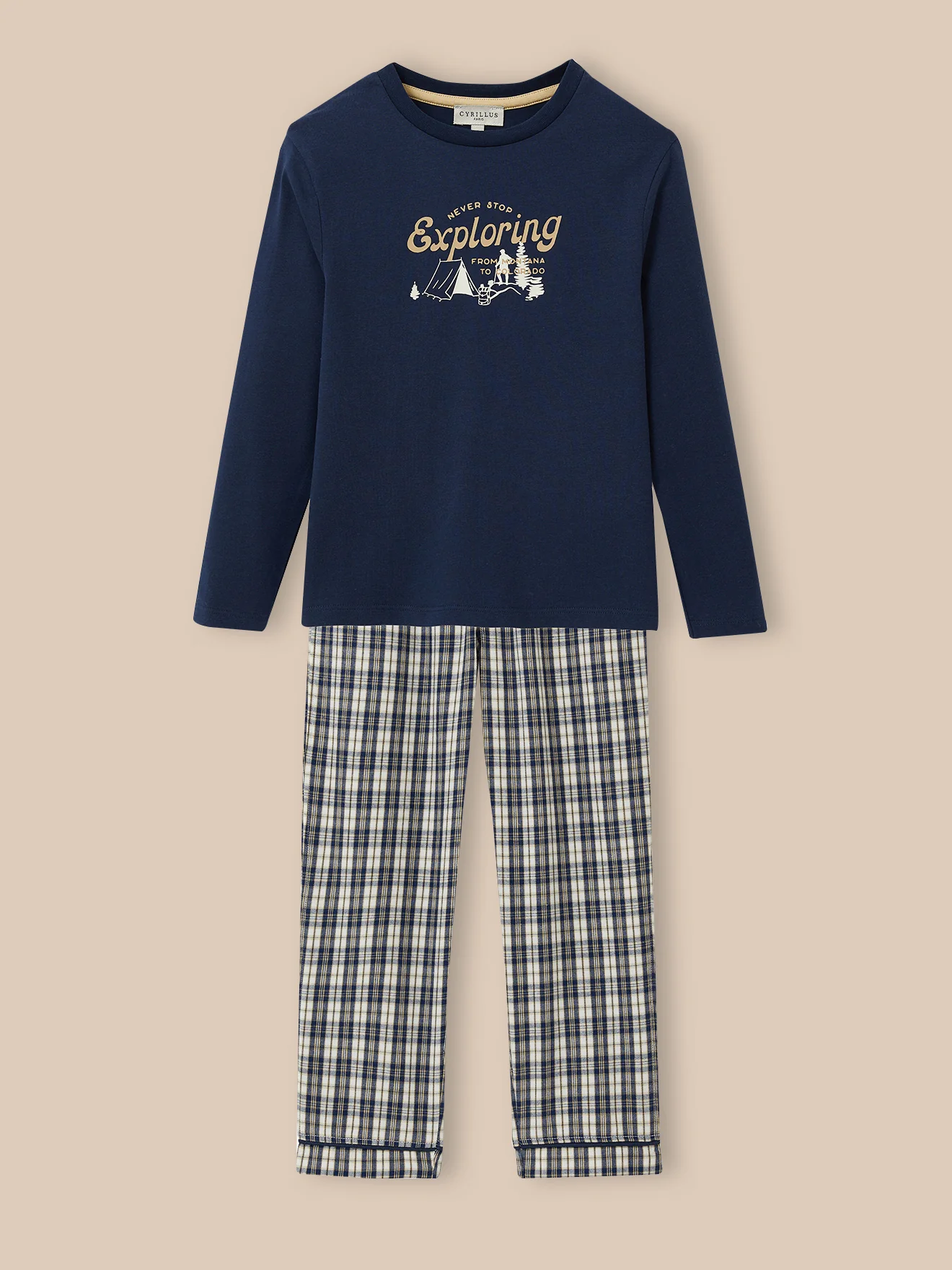 T-shirt moderne en coton bio, pantalon à carreaux en flanelle de coton… Un pyjama chaud et doux, parfait pour les nuits fraîches d’hiver.