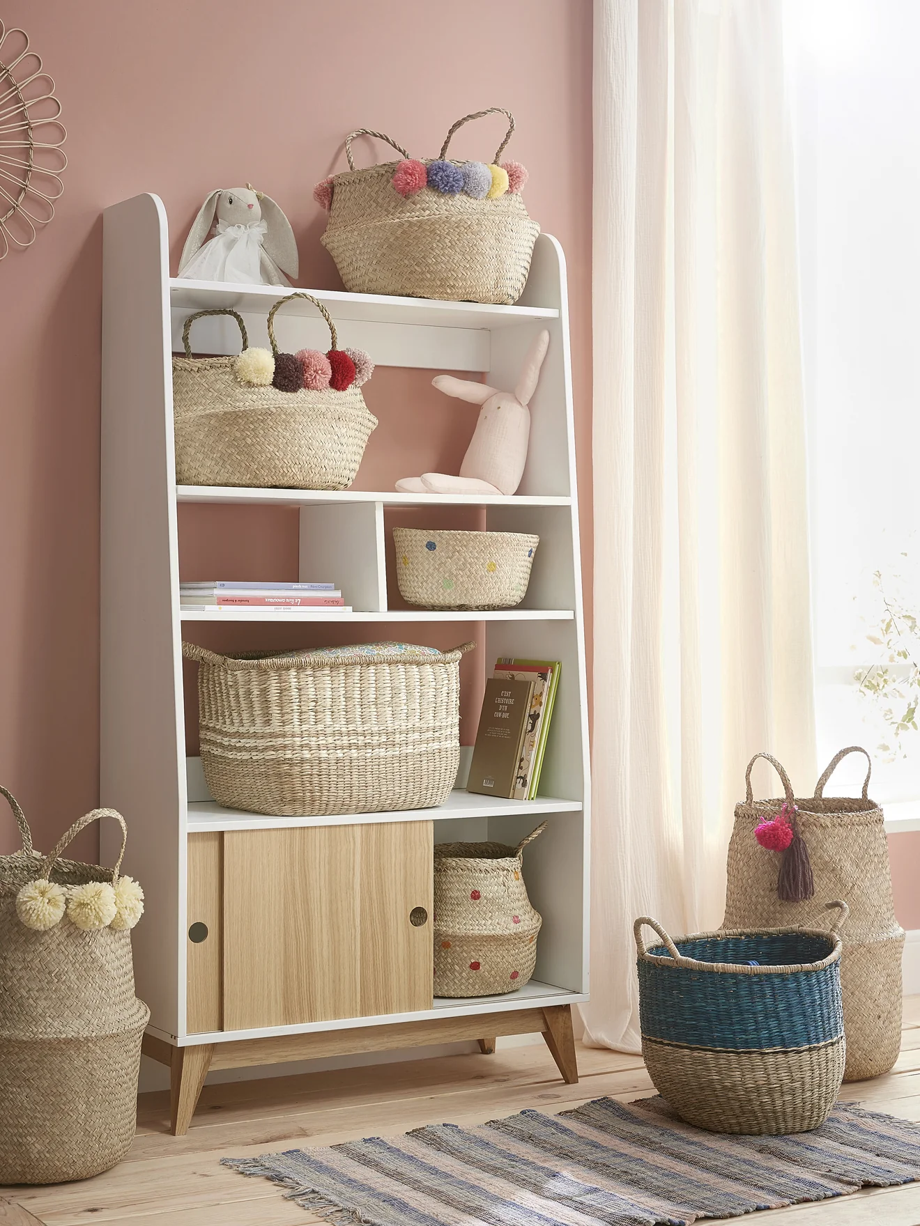 Rideau à l’aspect gaufré confectionné en gaze de coton et maintenu par de petites nouettes.