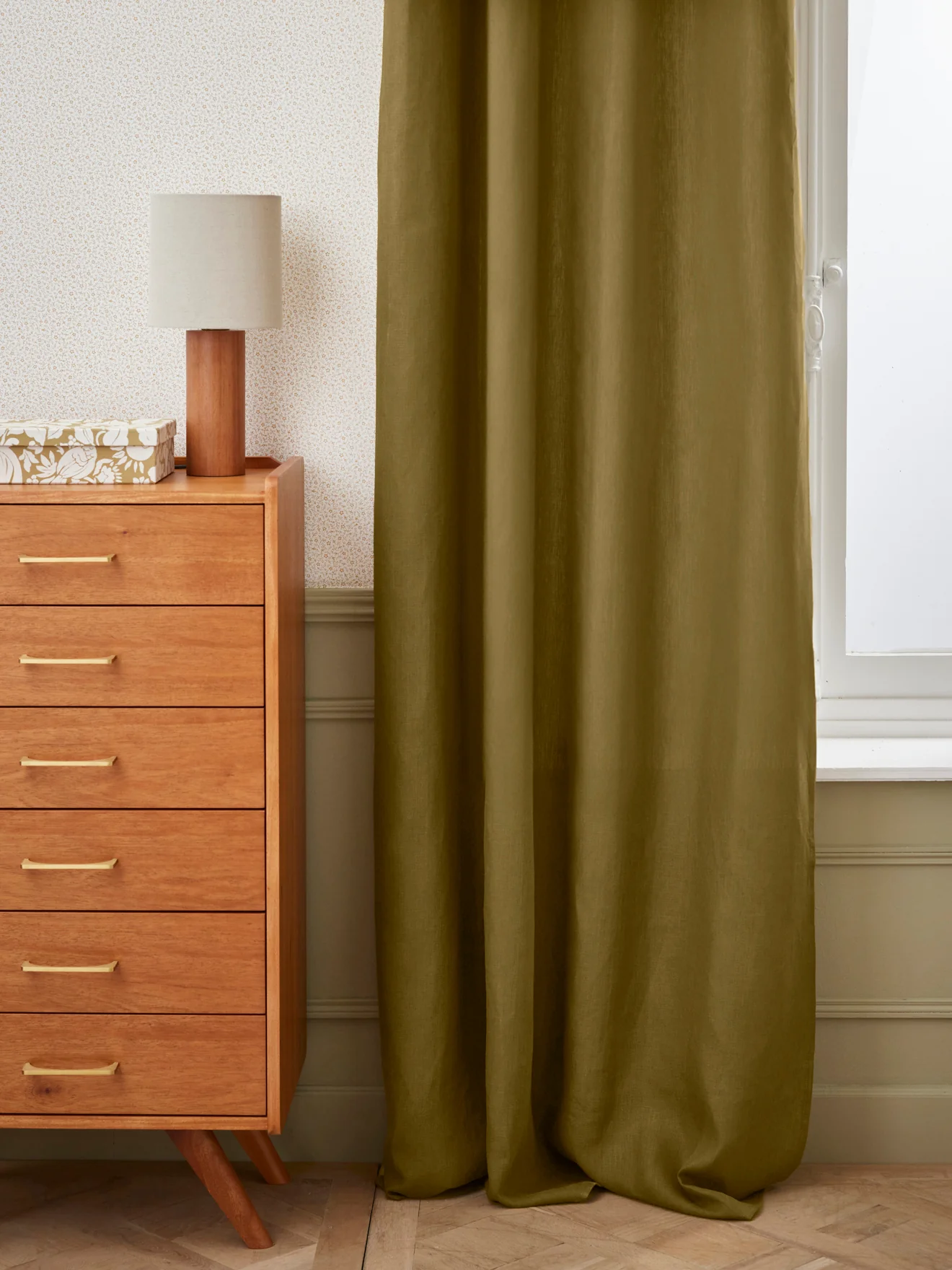 Finitions soignées et lin épais pour un tomber parfait. Ce rideau en lin se décline dans une palette de coloris délicats et actuels. Les oeillets noirs accentuent cette touche de modernité.