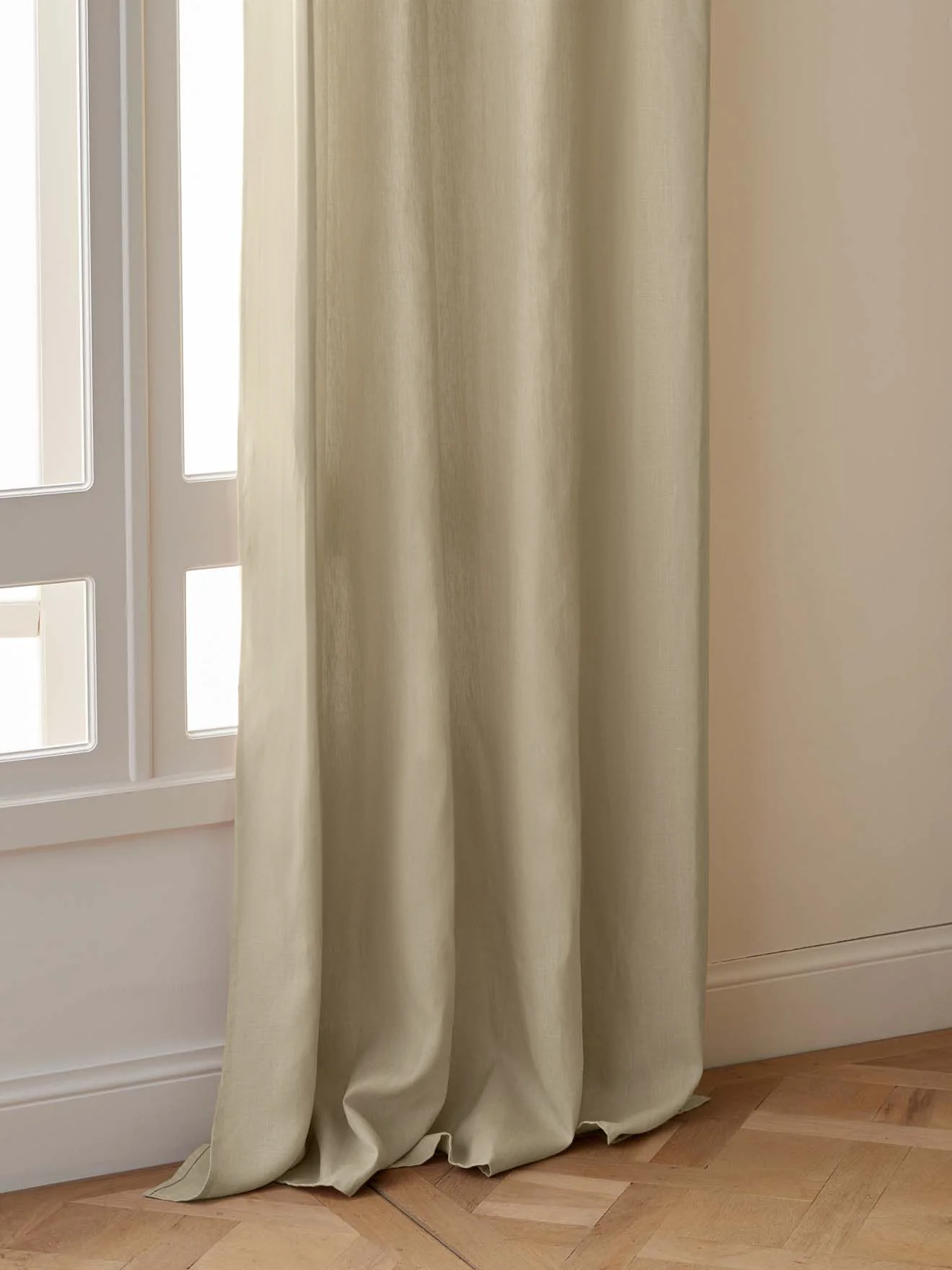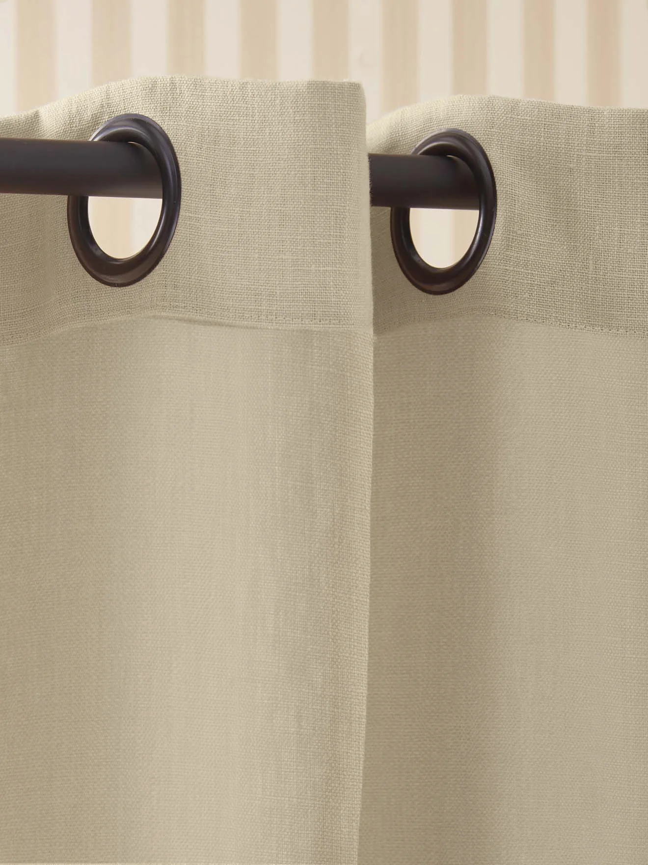Finitions soignées et lin épais pour un tomber parfait. Ce rideau en lin se décline dans une palette de coloris délicats et actuels. Les oeillets noirs accentuent cette touche de modernité.