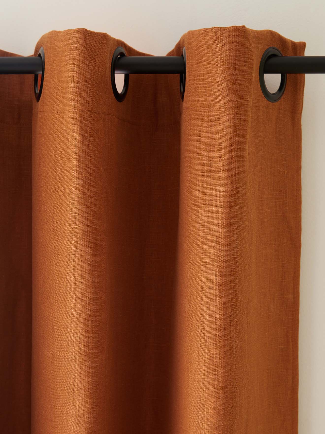 - 8 oeillets en métal noir mat, diamètre intérieur 4 cm env. Finition ourlet.