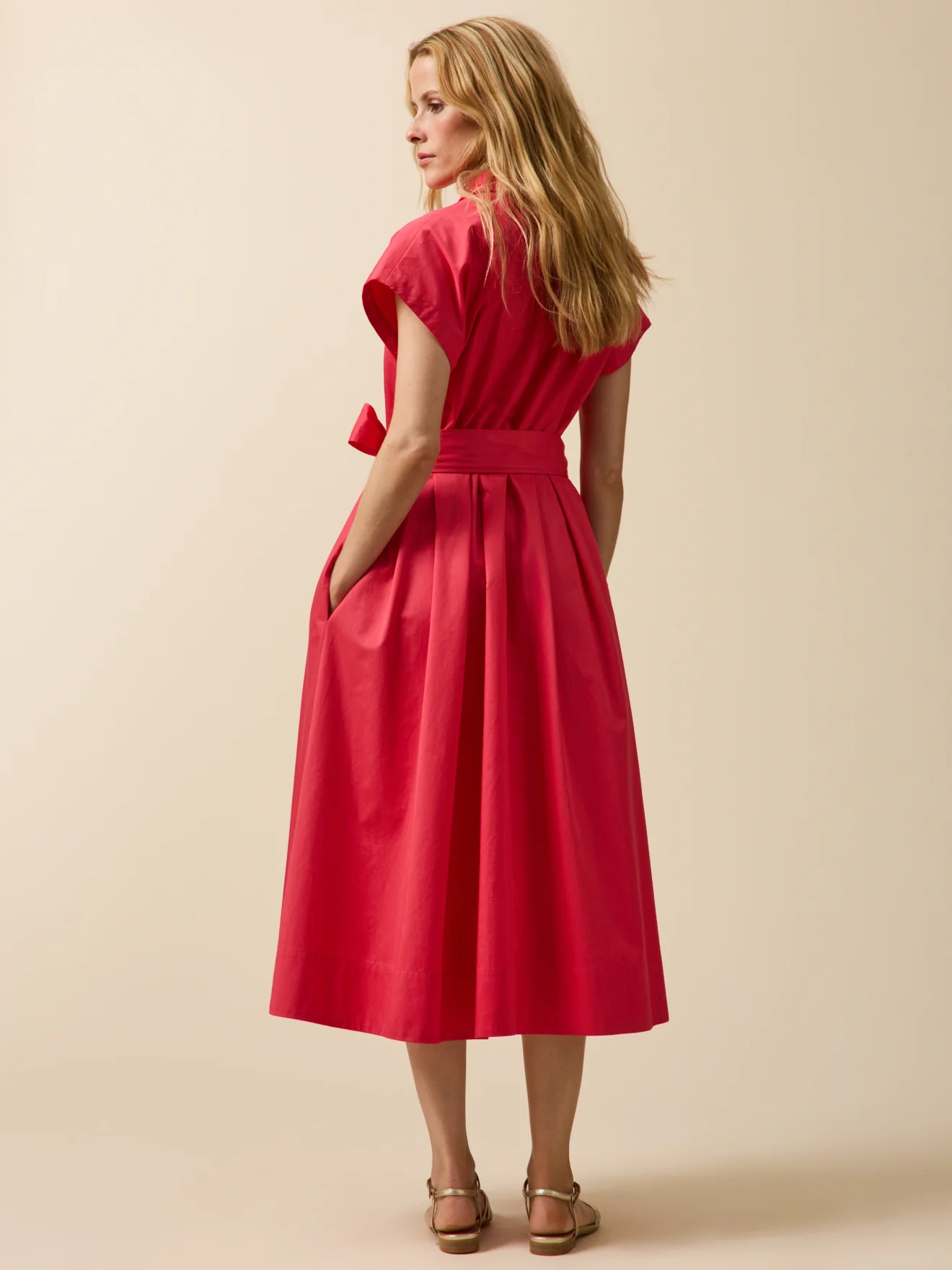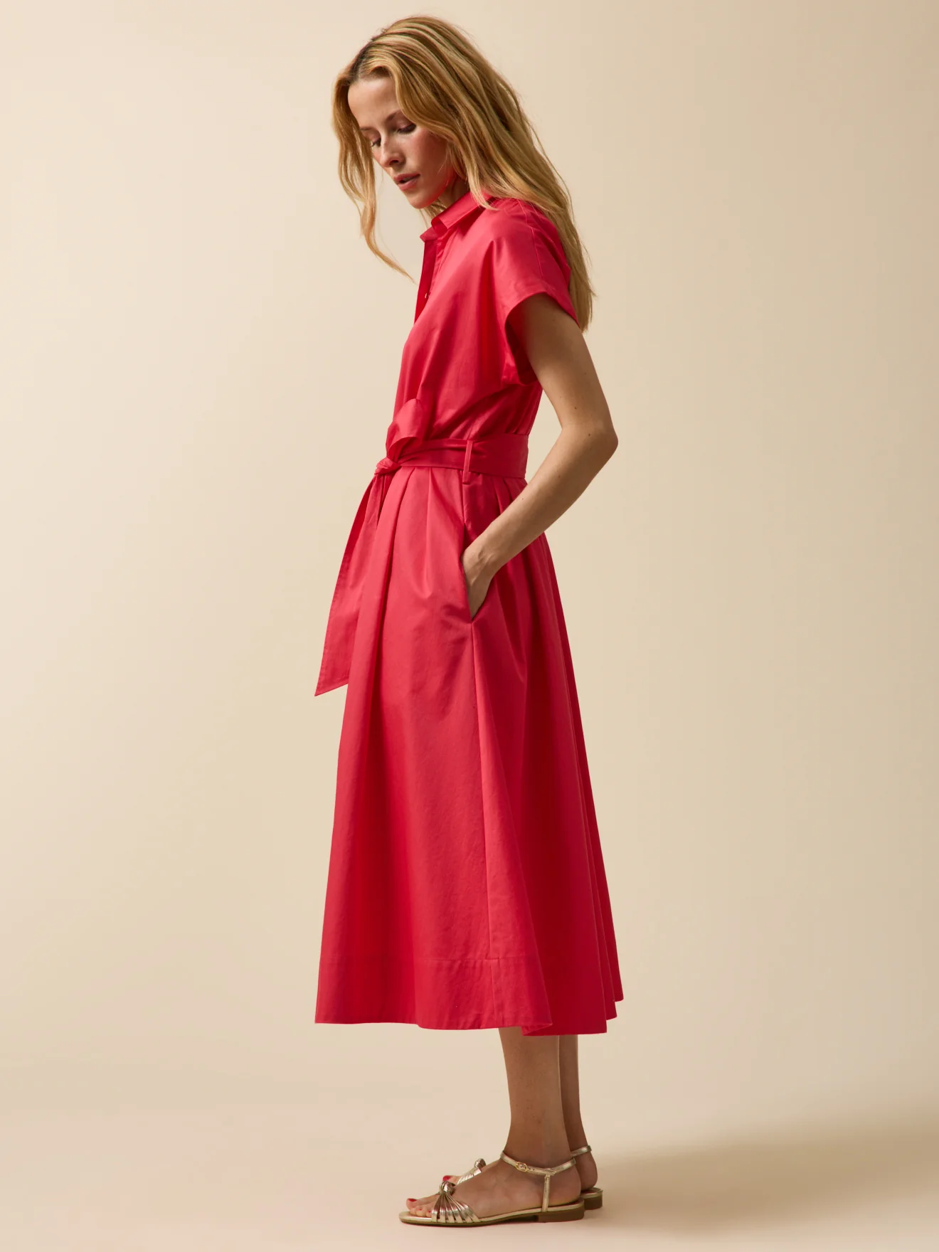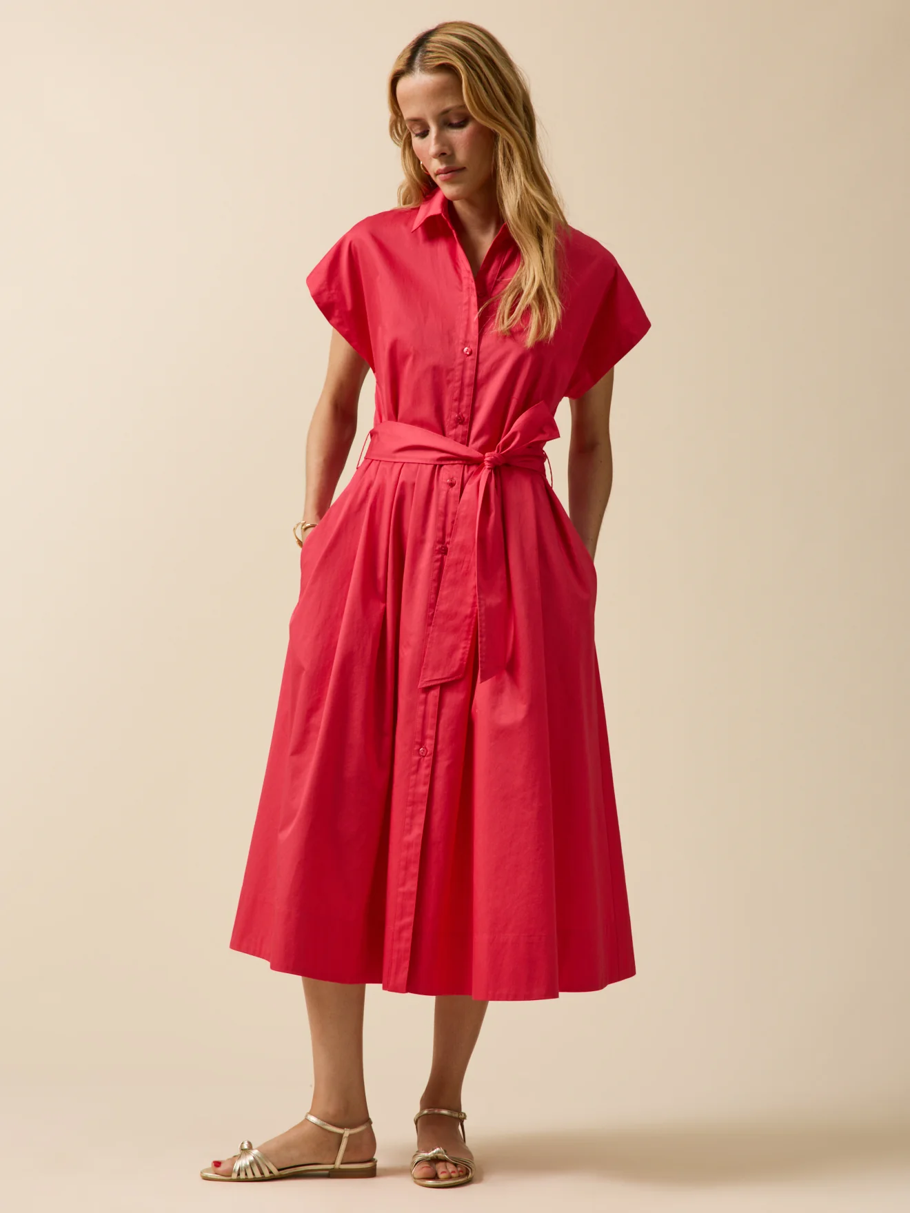 Volume bluffant, coloris chic, silhouette magistrale et éblouissante popeline satinée glacée. Digne de tous les moments d’exception, la robe mi-longue signe un look spectaculaire à l’élégance spontanée. Tissu et confection Europe.