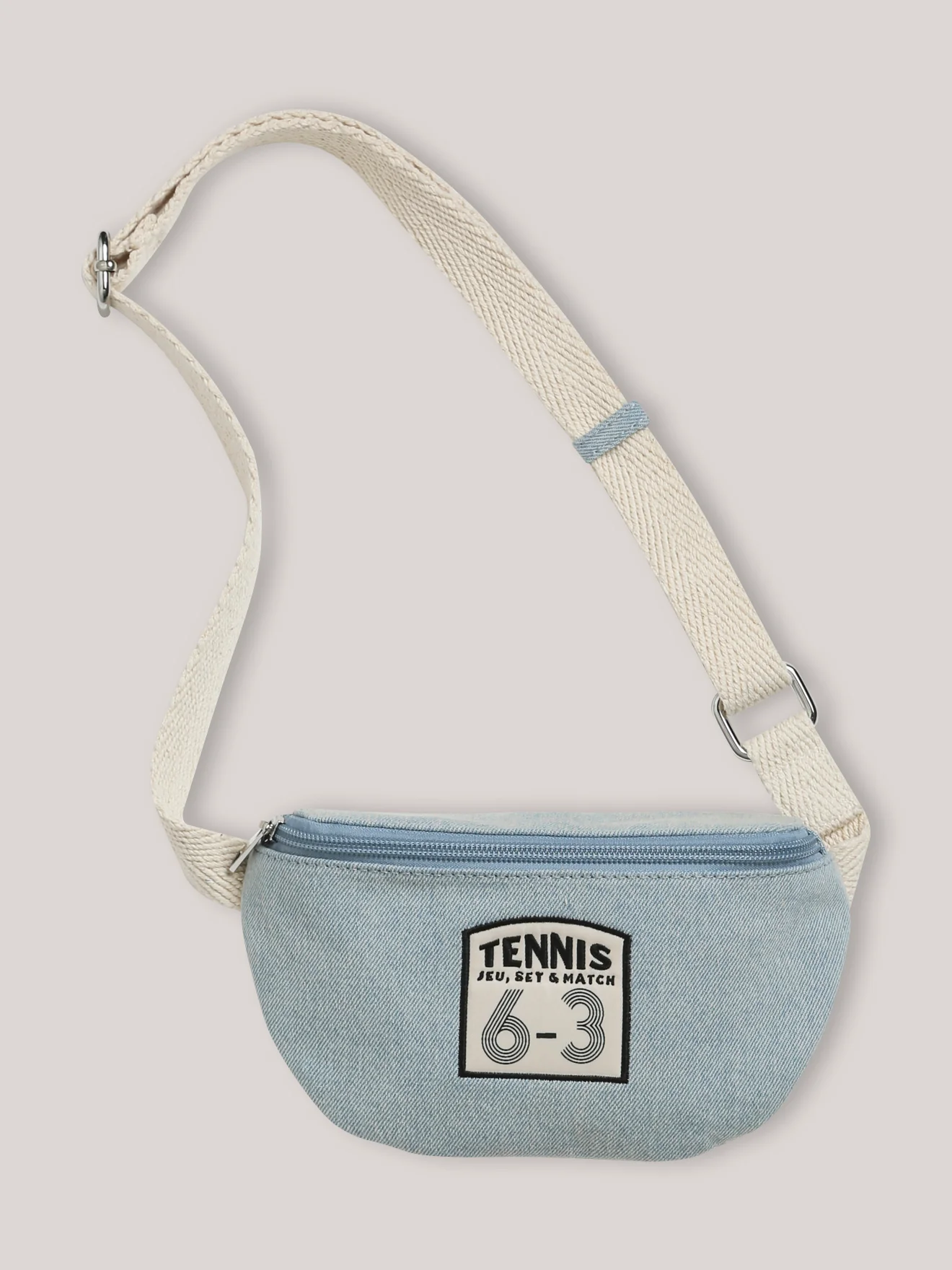 Ce sac banane en denim bleach évoque l’été et les activités en plein air ! Un essentiel pour garder l’essentiel à portée de main, en toute occasion. Etiquette tennis devant Ouverture par glissière, sangle réglable Dim. : largeur 25cm, hauteur 11cm, profondeur 5cm