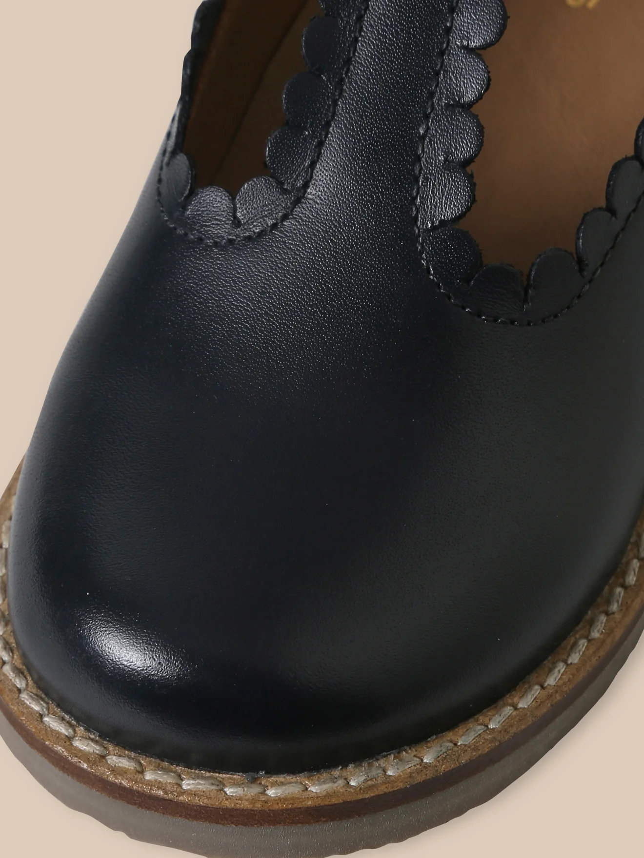 Cette Salomé se distingue par sa découpe festonnée, une chaussure délicate et pleine de charme.