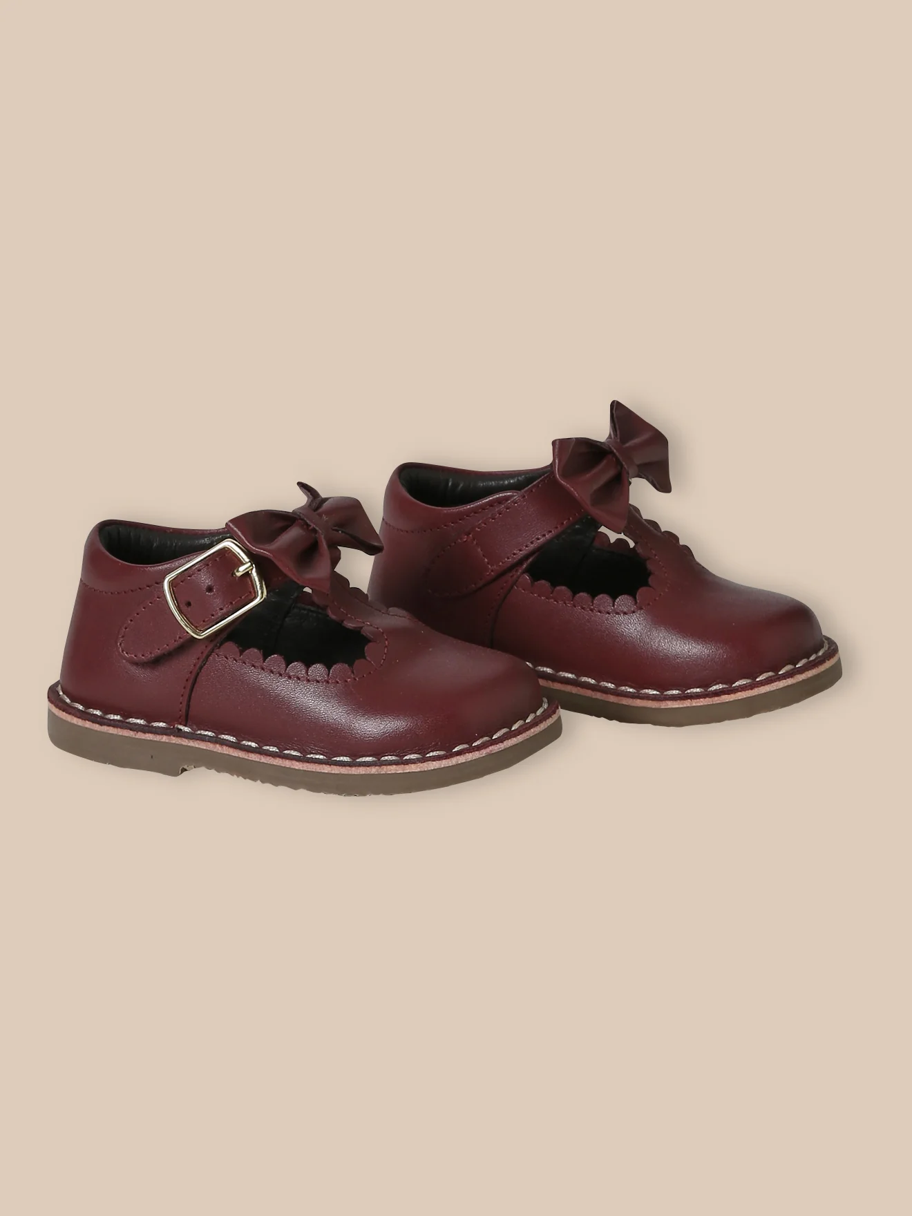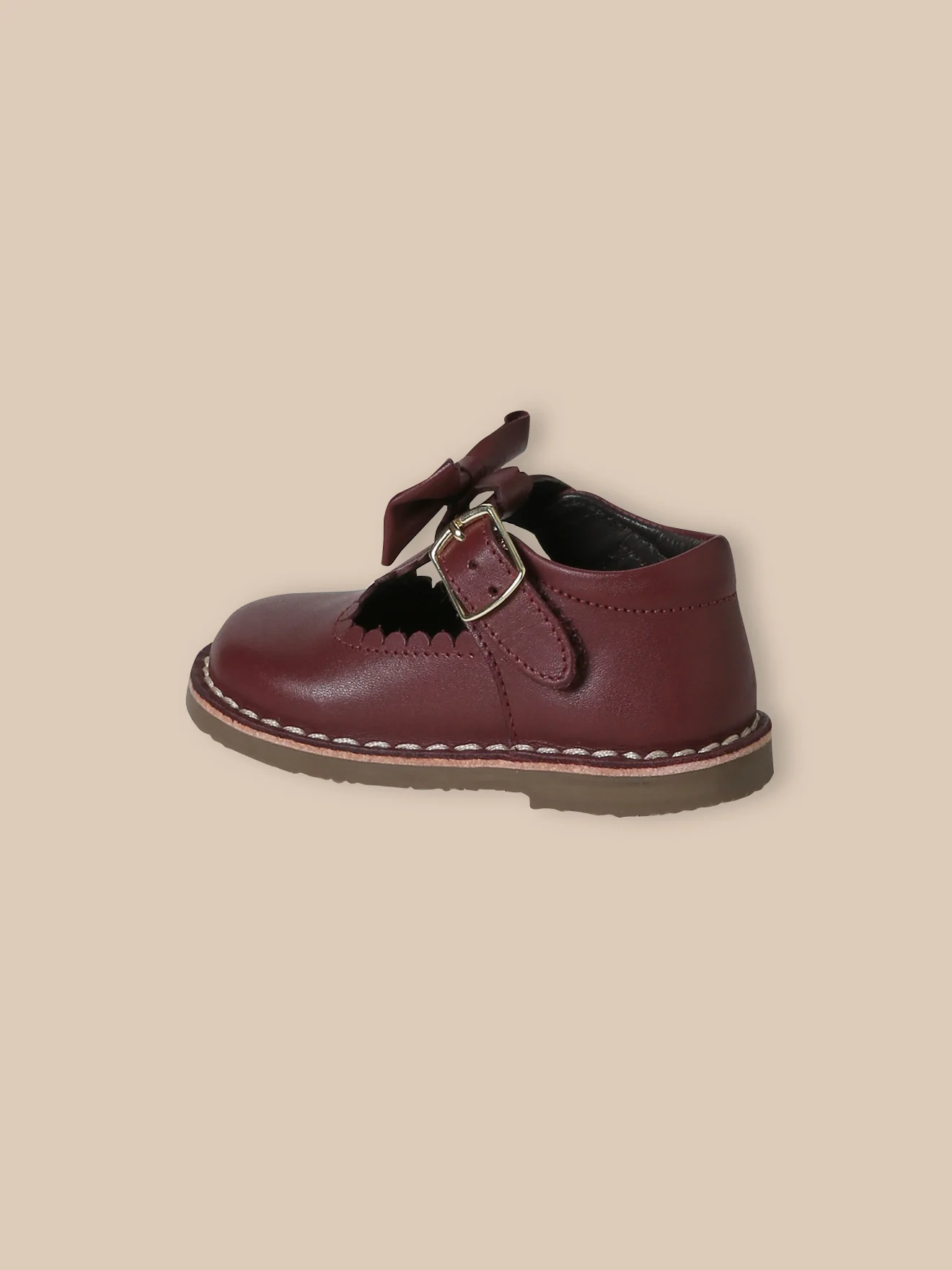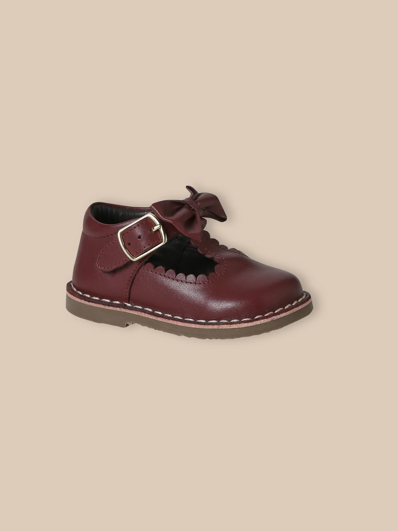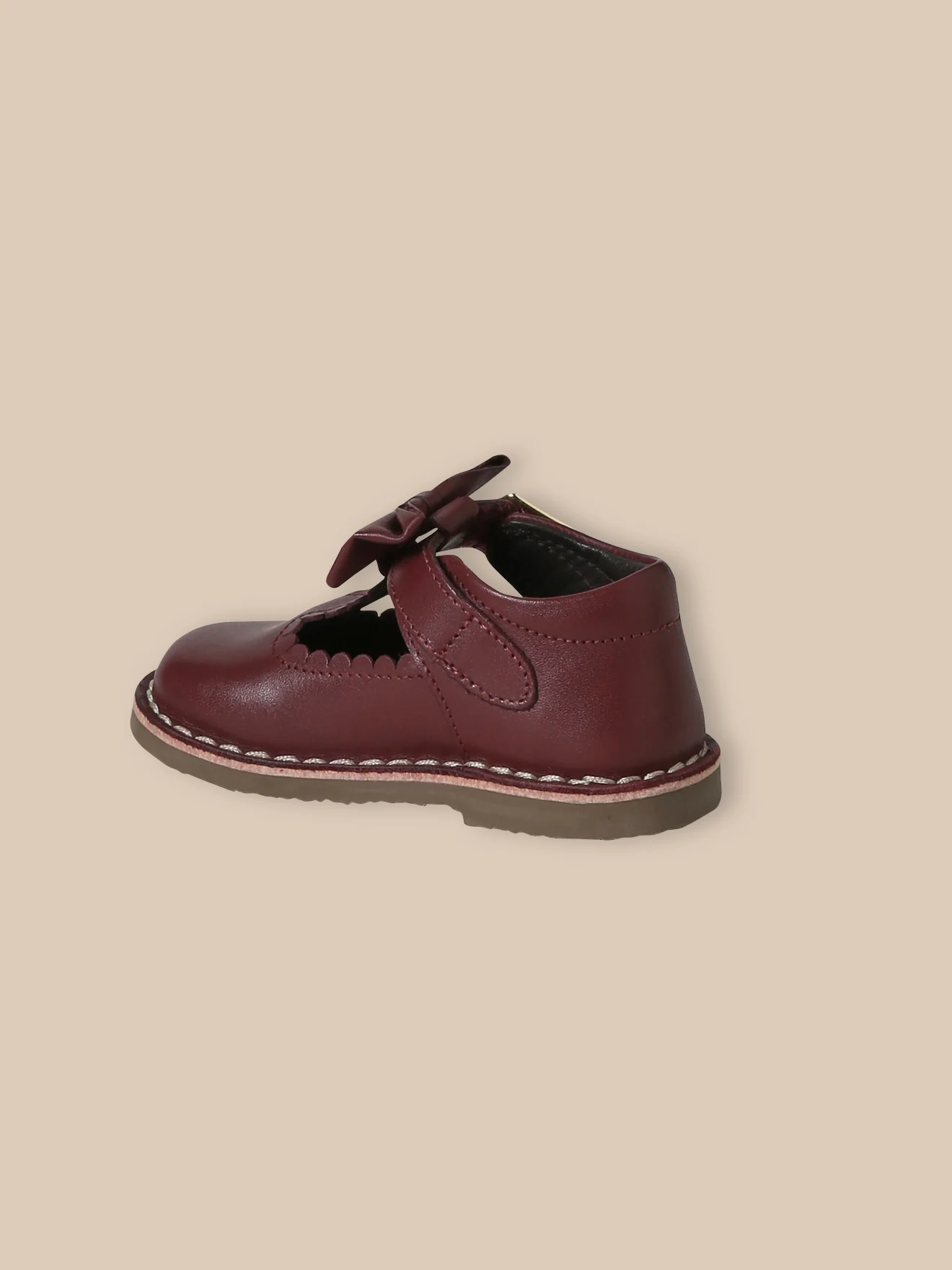 Cette chaussure associe élégance et confort pour accompagner avec style les premiers pas de votre enfant. Noeud sur la bride devant. Découpe festonnée Bride boucle monté sur scratch Surpiqûre contrastée