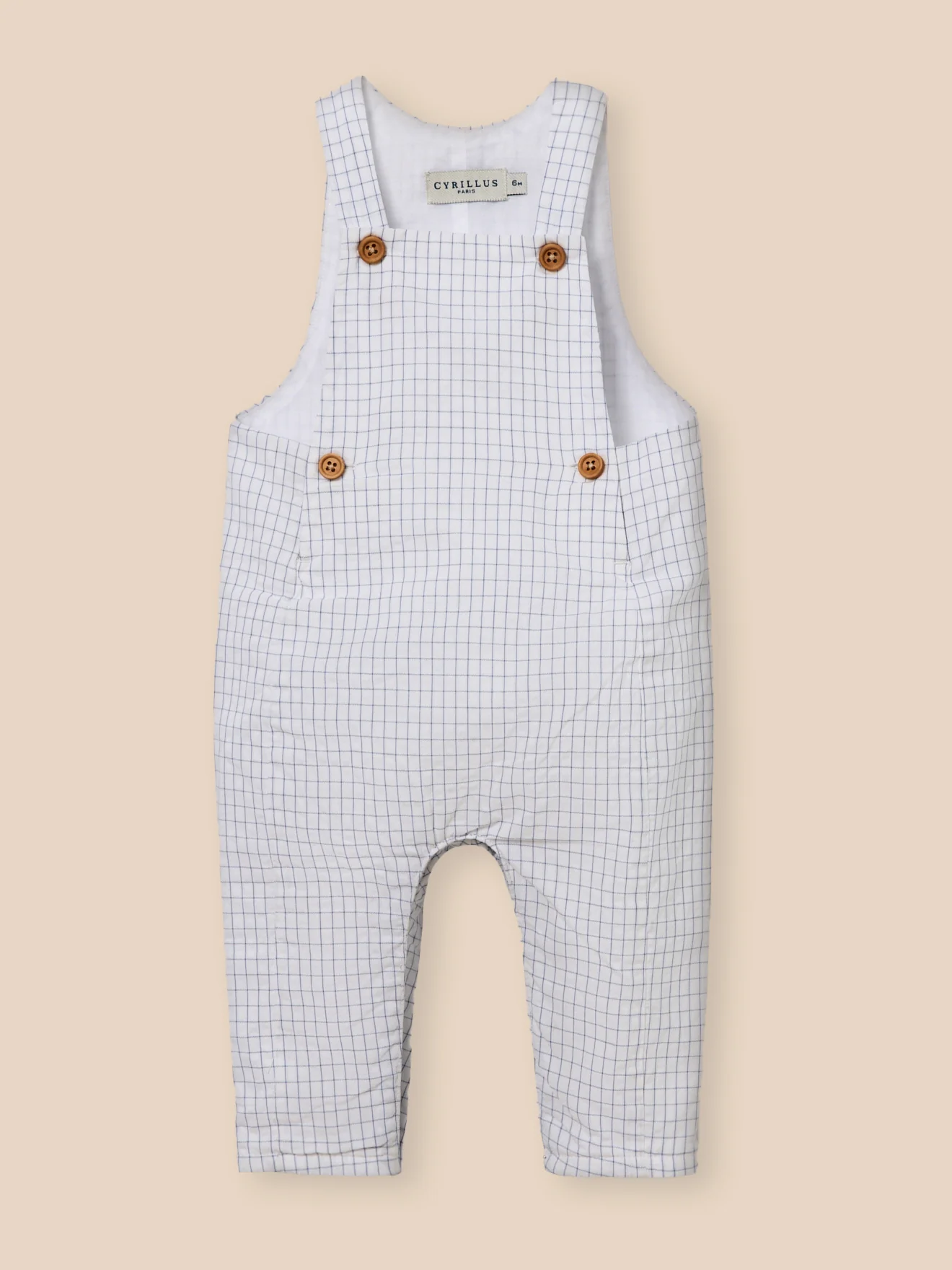 Charme rétro et élégance moderne de cette salopette à carreaux délicats inspirée des cahiers d’écoliers d’autrefois. ! Bretelles réglables Boutons en bois Pressions à l’entrejambe