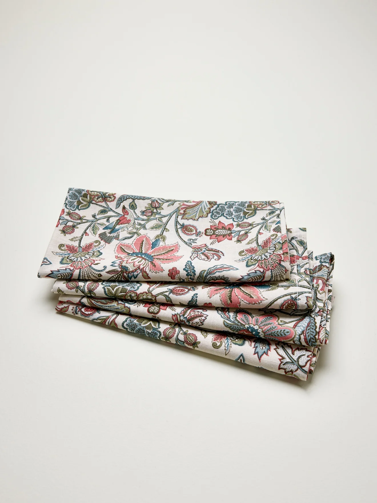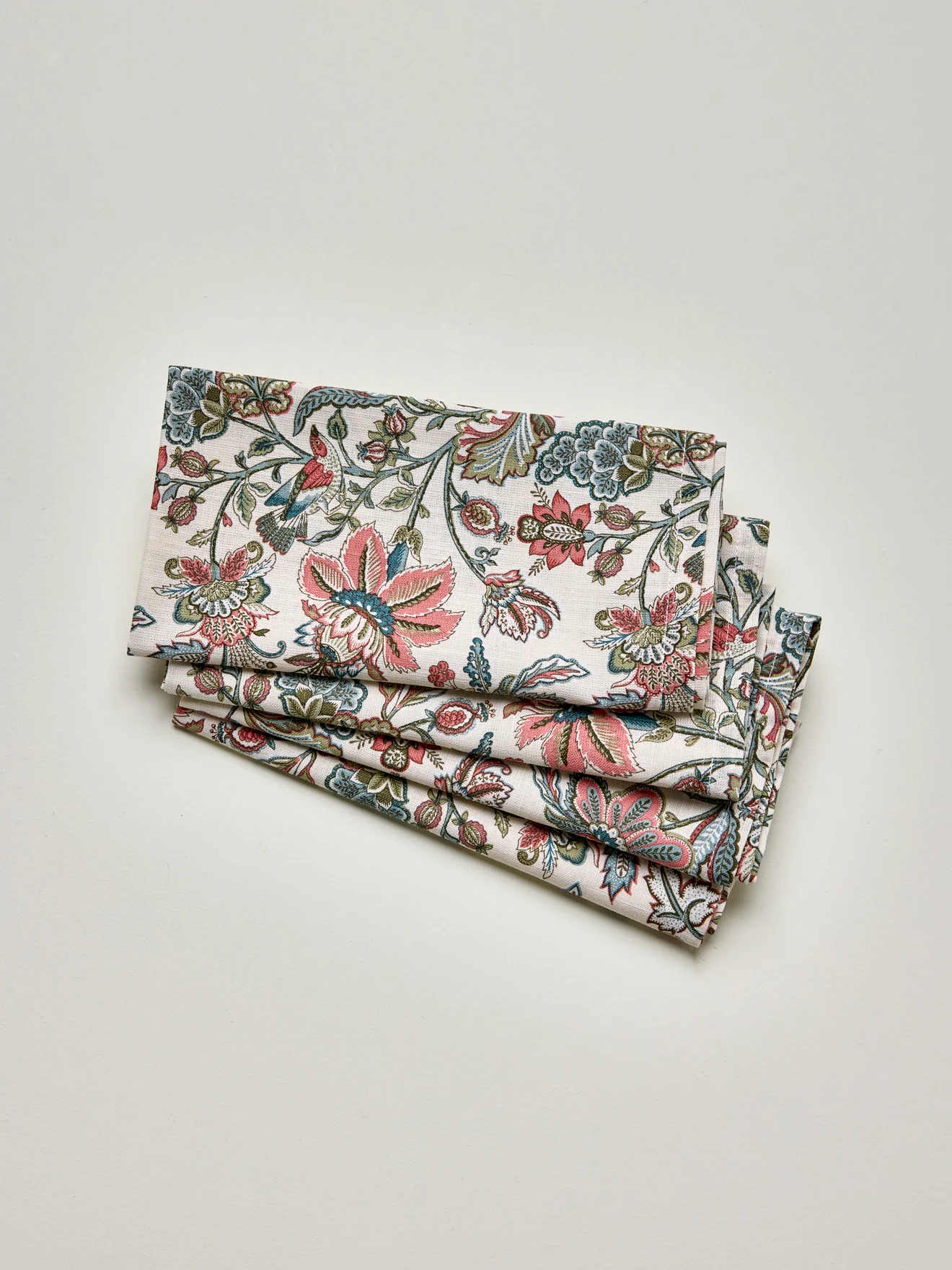 Lot de 4 serviettes de table en coton tramé à large motif fleuri finement travaillé. Mariage de nuances vives et de coloris tendres. Le coton tramé confère à ces serviettes de table un aspect lin délicatement texturé, doux et particulièrement agréable. Parfait équilibre entre bien-être et élégance. L’imprimé Augustine est une création Cyrillus.